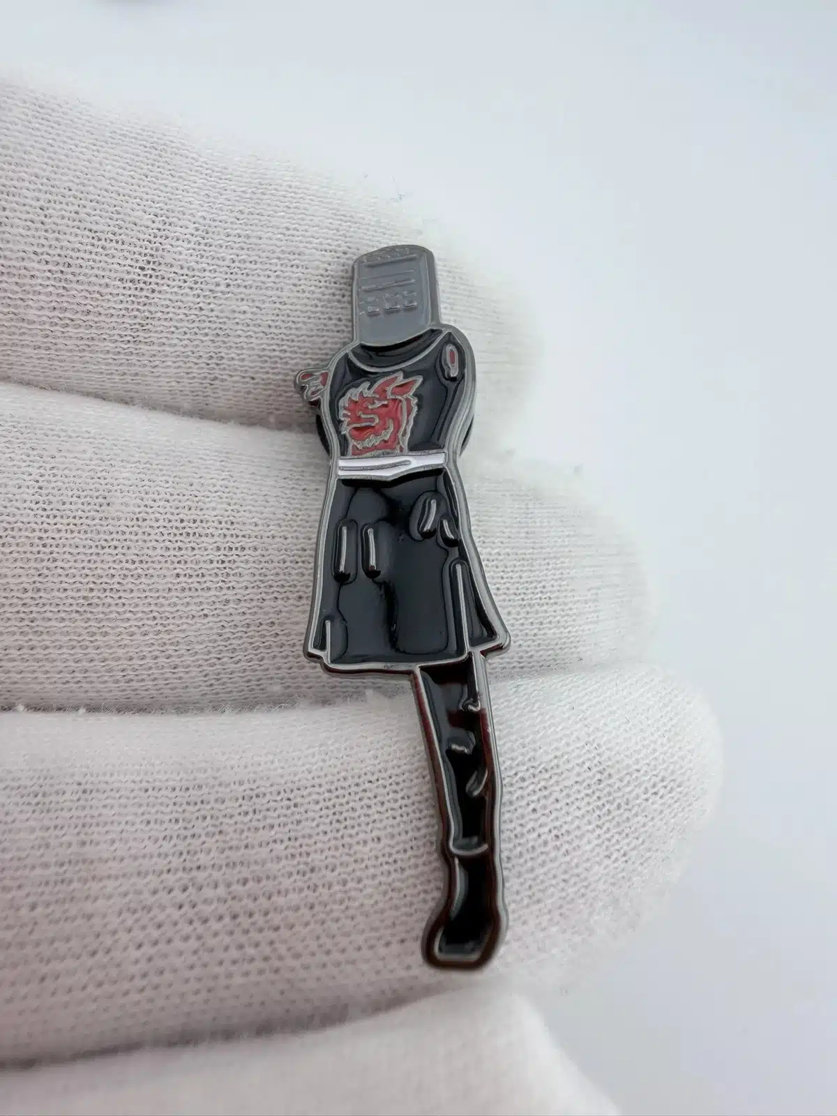 This lapel pin features the iconic Black Knight from Monty Python and the Holy Grail, depicted standing on one leg with his limbs removed, capturing the character’s humorous resilience. Produced by the Philosophers Guild, the design pays homage to the classic 1975 film and its enduring legacy in comedy.