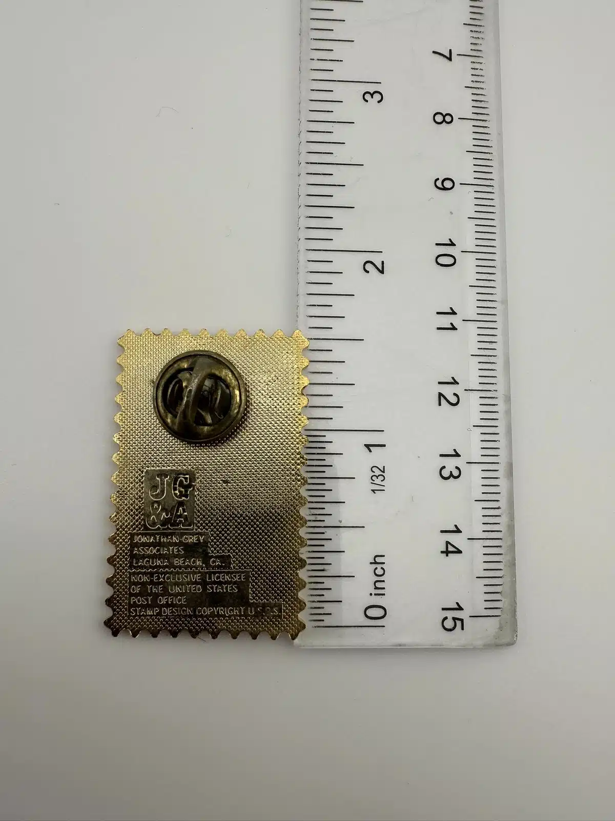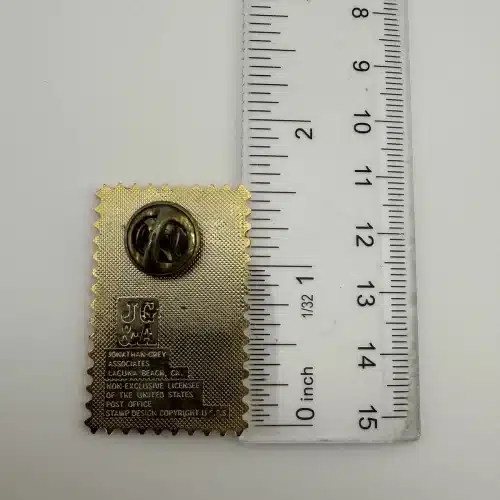 The NASA Apollo 8 USPS 6c Stamp Pin features a detailed reproduction of the iconic stamp that commemorates the historic Apollo 8 mission, which was the first crewed spacecraft to orbit the Moon in 1968.