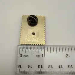 This pin features a detailed depiction of a NASA astronaut exploring the lunar surface, inspired by the iconic 18-cent USPS stamp commemorating the Apollo moon missions.