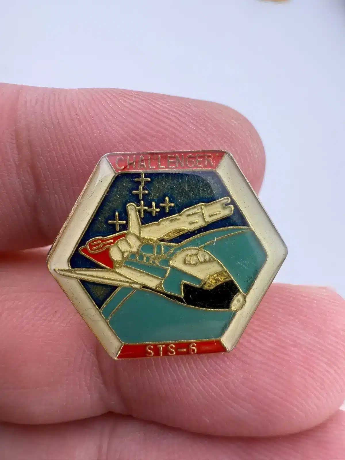 NASA Space Shuttle Challenger STS-6 Pin – Hexagon Shaped