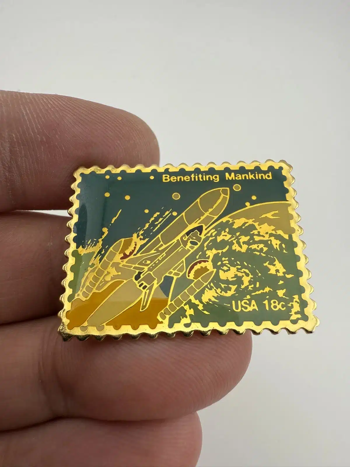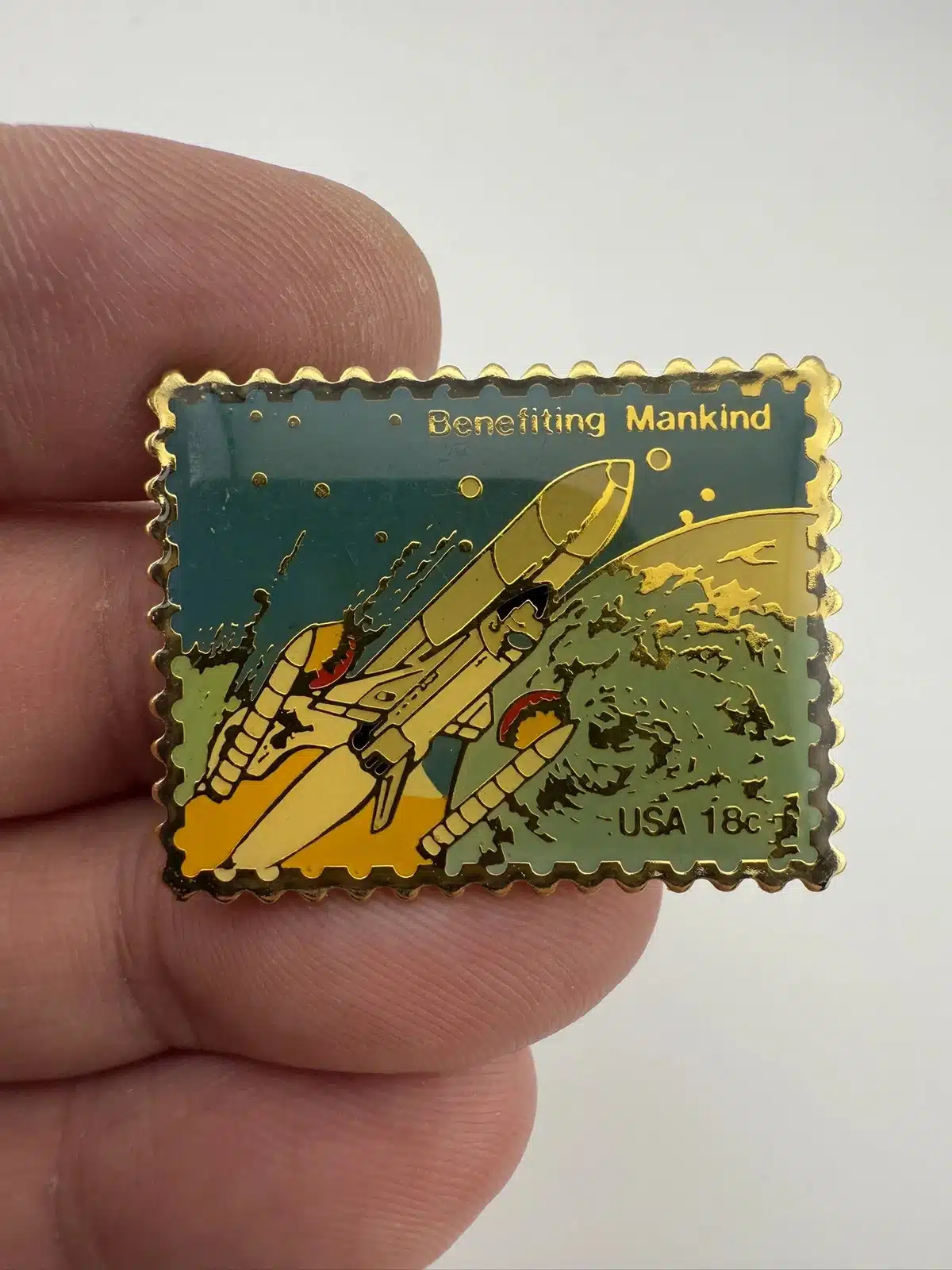 NASA Space Shuttle Dropping Boosters USPS 18c Stamp Pin – Benefitting Mankind