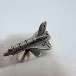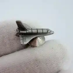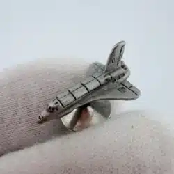 The detailed shuttle silhouette represents NASA’s Space Shuttle program, which operated from 1981 to 2011 and marked a major era in American spaceflight and reusable spacecraft development.