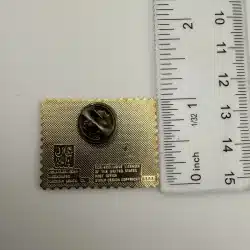 The NASA Space Shuttle USPS 18c Stamp Pin features a detailed representation of the iconic Space Shuttle, highlighting its significance in space exploration.
