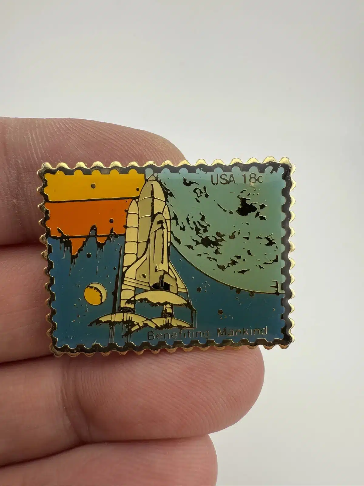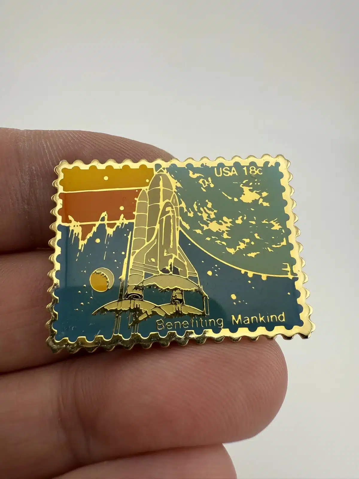 NASA Space Shuttle USPS 18c Stamp Pin – Benefitting Mankind