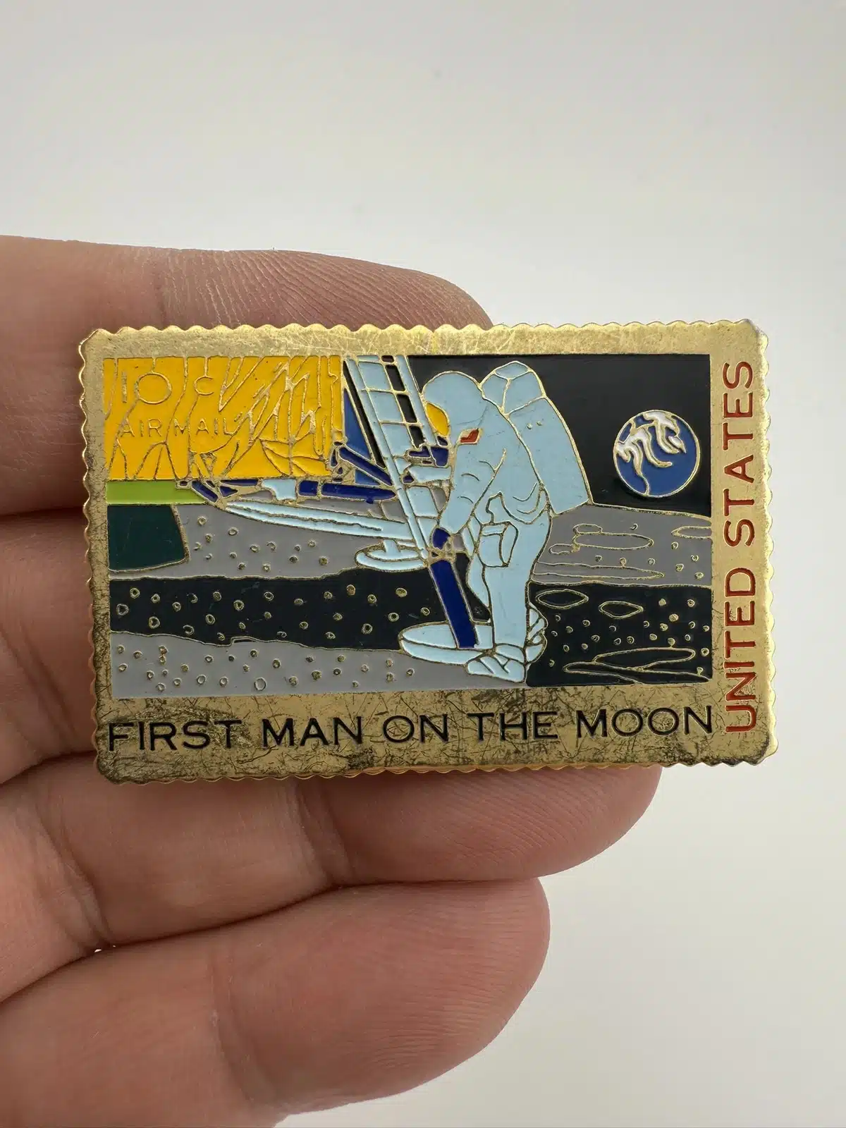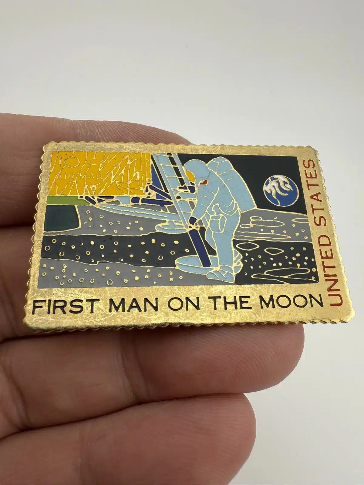 NASA USPS 10c Airmail Stamp Pin – First Man On The Moon – Astronaut