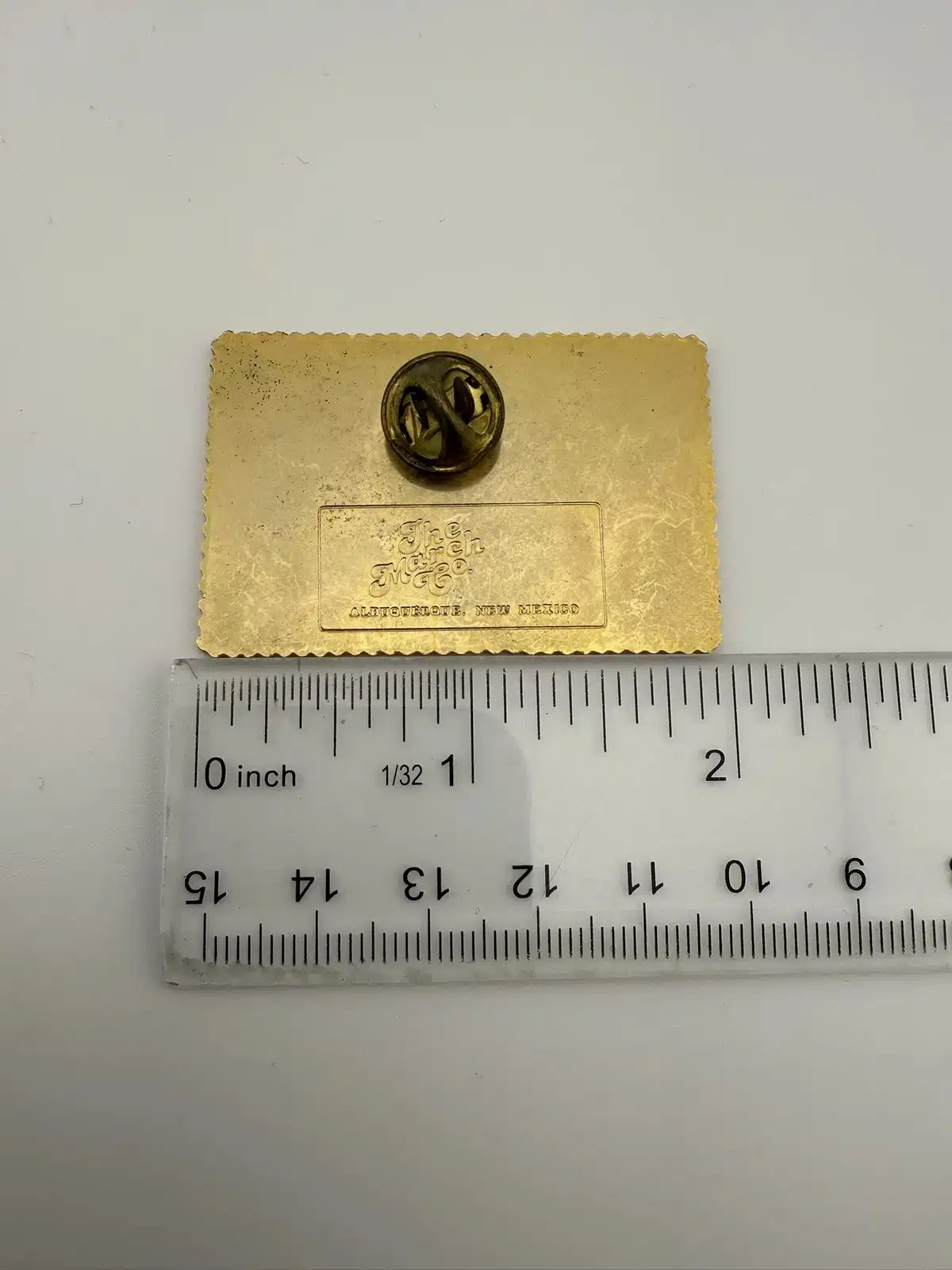 This pin features the iconic NASA USPS 10c Airmail stamp design, commemorating the historic Apollo 11 mission that landed the first man on the moon in 1969.