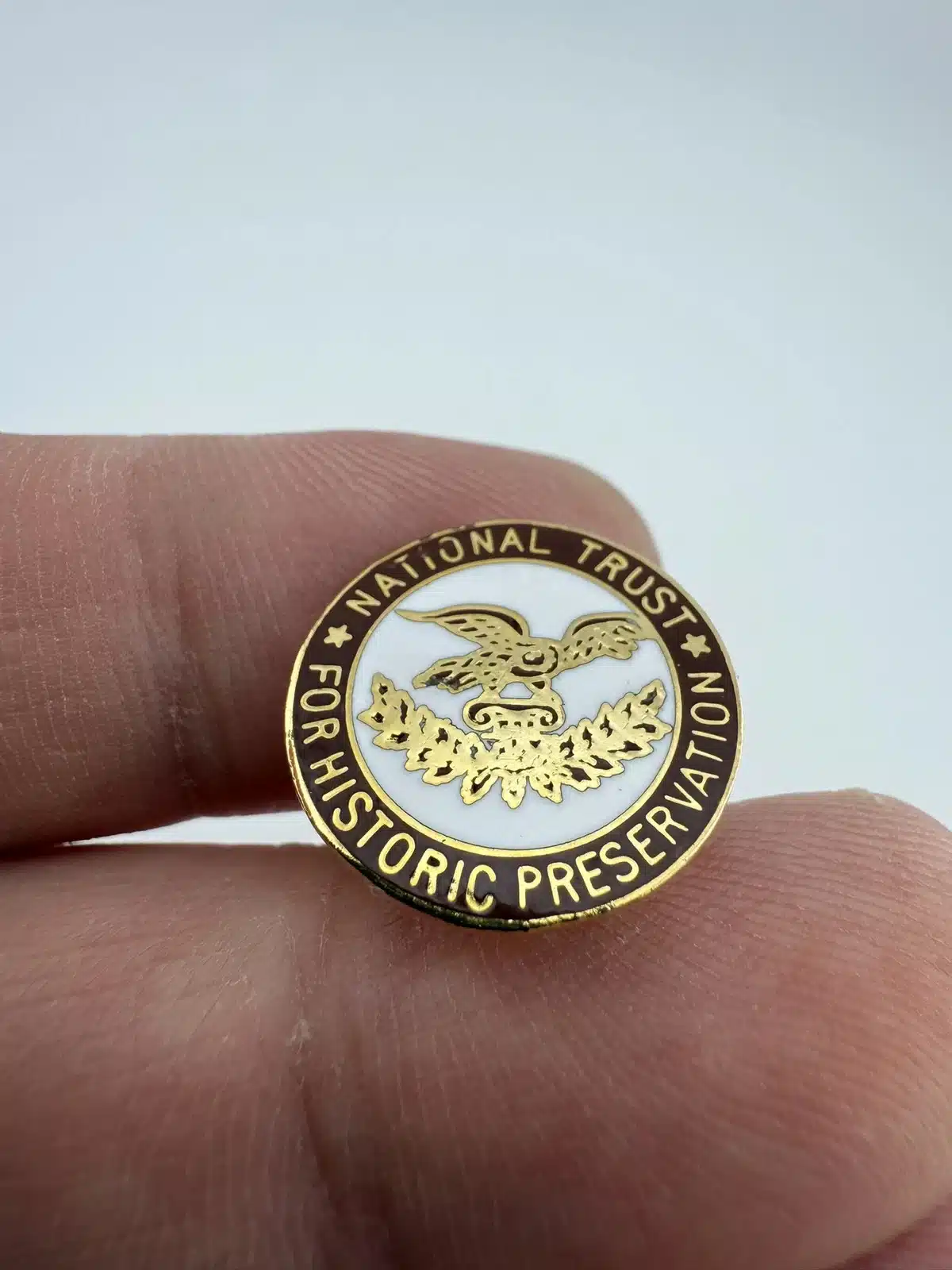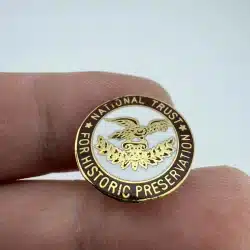 The National Trust for Historic Preservation pin features a striking eagle in the center, symbolizing the organization’s commitment to preserving America’s historic sites.