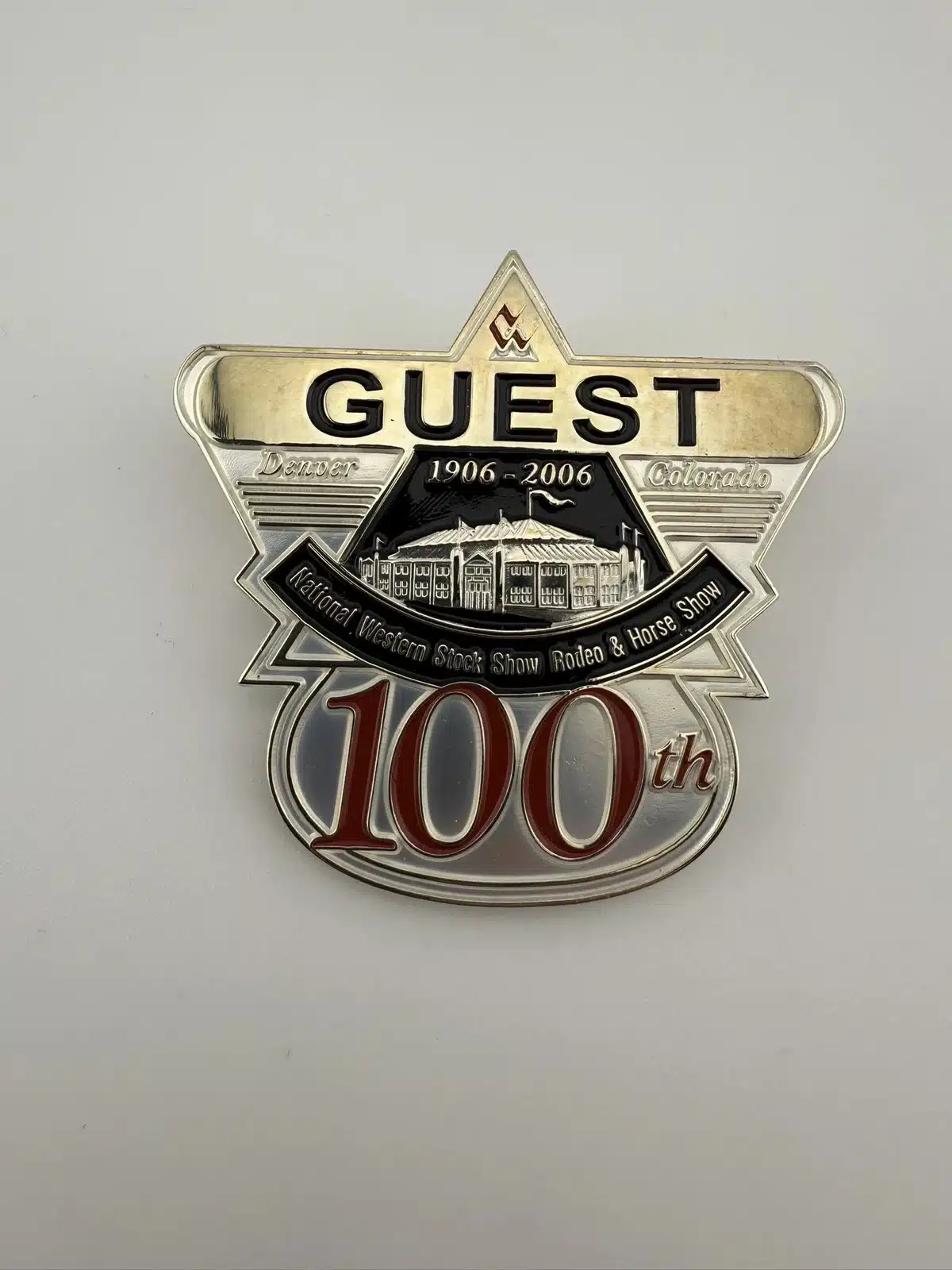 This guest pin celebrates the 100th Anniversary of the National Western Stock Show, Rodeo, & Horse Show, held in Denver, Colorado in 2006.