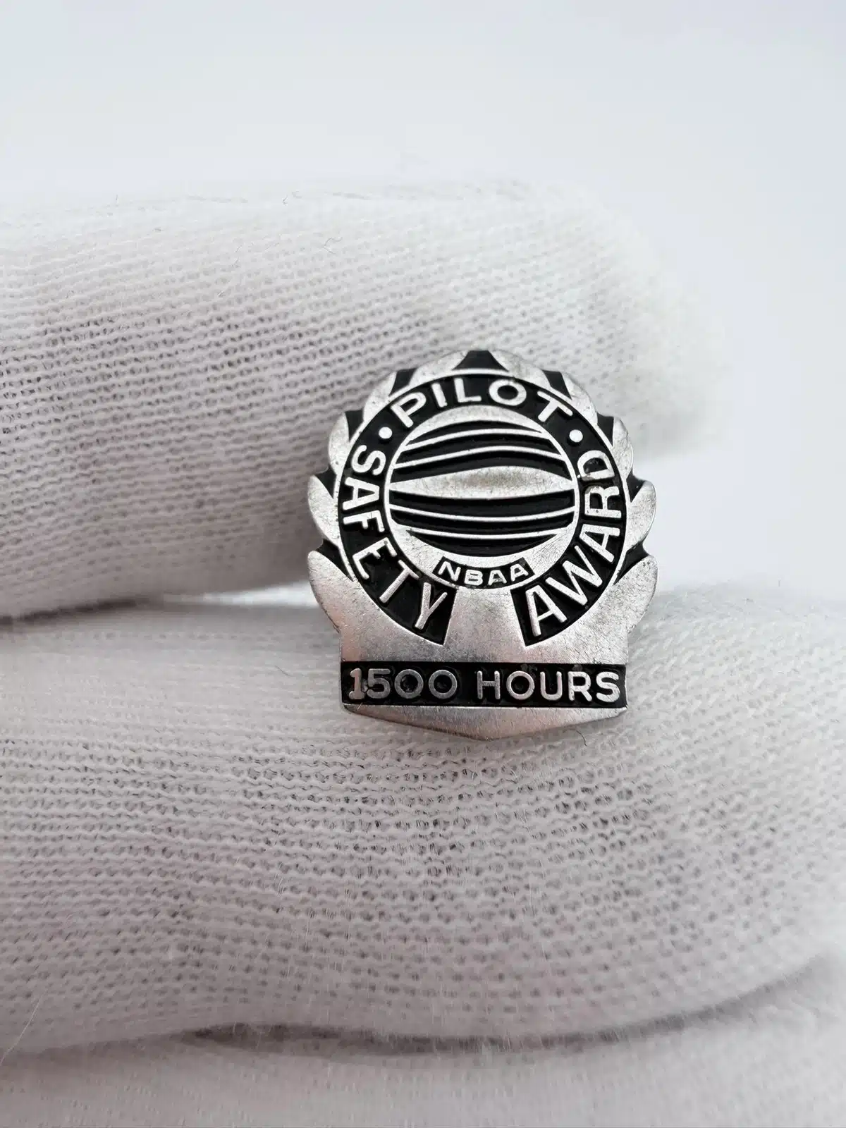 This pin features the emblem of the National Business Aviation Association, representing the prestigious 1500 Hour Pilot Safety Award. The design highlights a pilot’s commitment to safety and excellence in aviation, embodying the standards upheld by the NBAA.