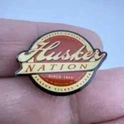 This undated pin features the Husker Nation logo and was given out exclusively to season ticket holders. Established in 1869, the Nebraska football program has a rich history, making this pin a significant piece of memorabilia for fans and collectors alike.