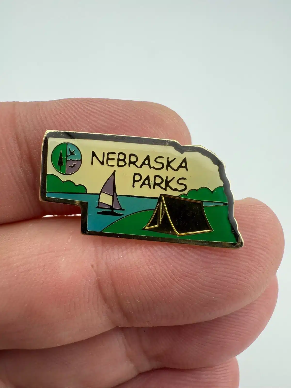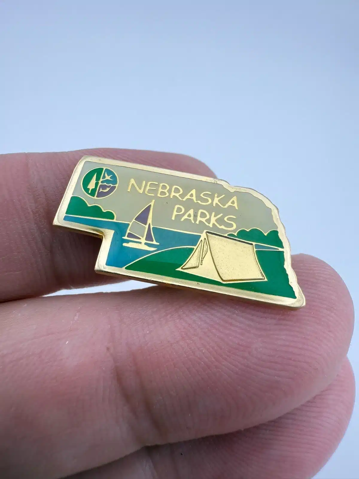 Nebraska Parks Pin with Nebraska Game and Parks Logo, Sailboat, Tent, and more