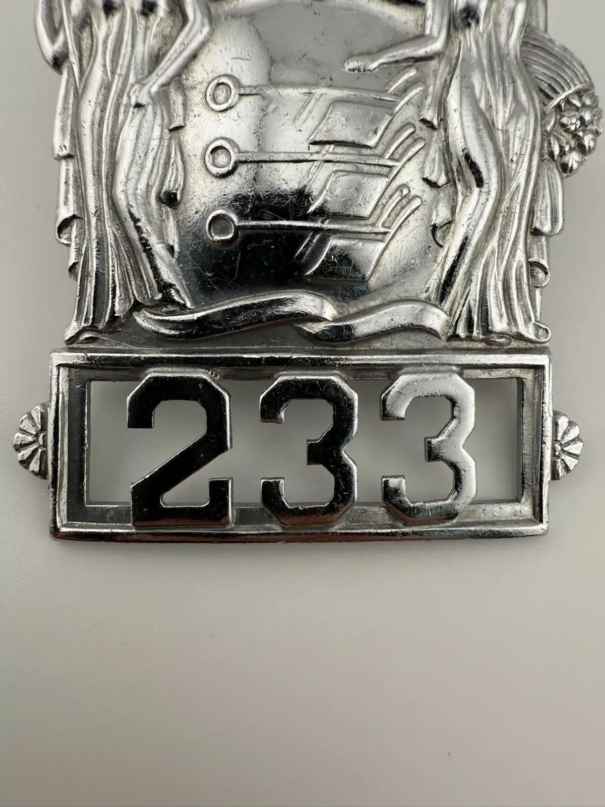 Unique and in great condition New Jersey Police Department hat badge worn by officer #233. Highly detailed.