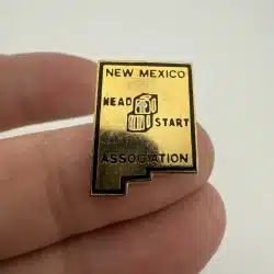 The New Mexico Head Start Association pin is shaped like the state of New Mexico. This collectible piece represents the commitment to early childhood education of the Head Start program.