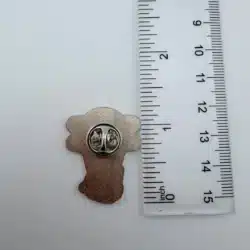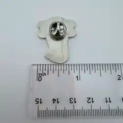 Pin measures just under 1 inch in width by just under 1.25 inches in height.