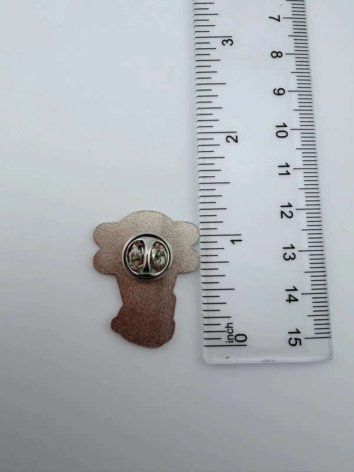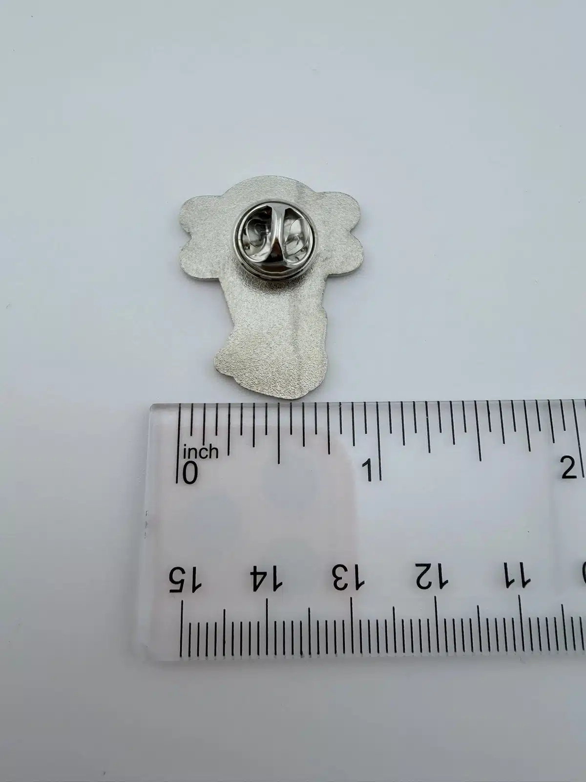 Pin measures just under 1 inch in width by just under 1.25 inches in height.
