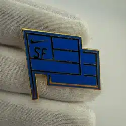 This three-pin set was designed by Dynamic Dynosaur Studio for Nike as part of the USA Basketball Tour and was distributed at select flagship store events. The group includes a San Francisco flag pin featuring a Nike swoosh and the letters SF, a basketball-shaped pin with a clean swoosh-only design, and a standout San Francisco cable car pin with a basketball shown passing through the cable car entrance. Please note that this is not a complete set, but it remains a distinctive and visually engaging example of Nike’s event-exclusive promotional designs.