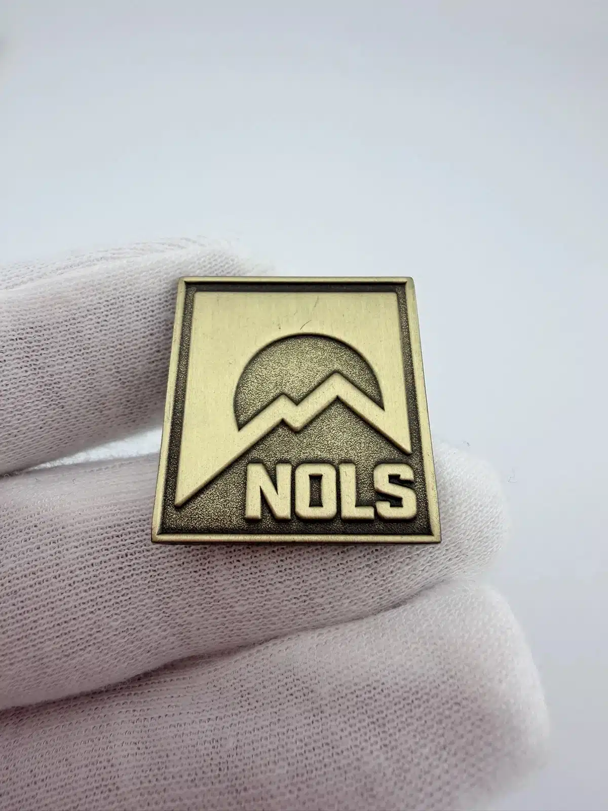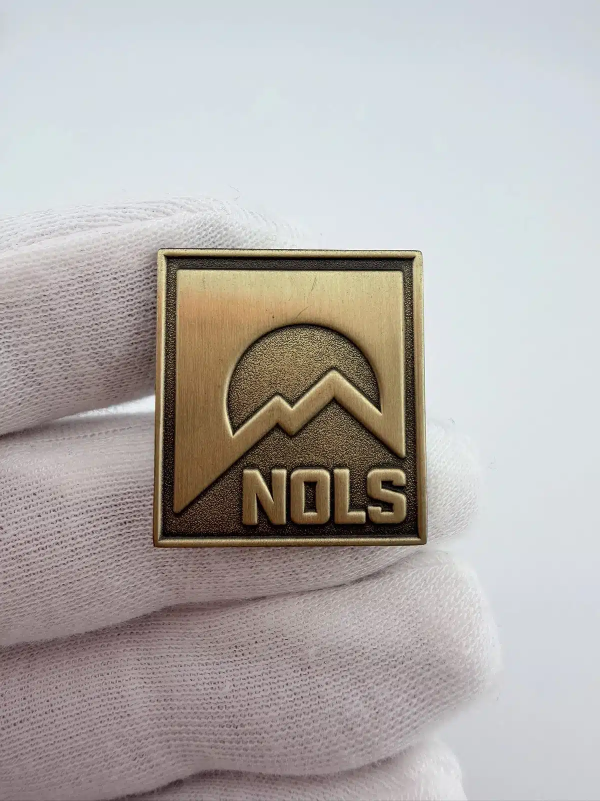 This NOLS National Outdoor Leadership School pin features a scenic graphic of the sun rising or setting over a mountain range, reflecting the organization’s strong connection to wilderness education and outdoor leadership.