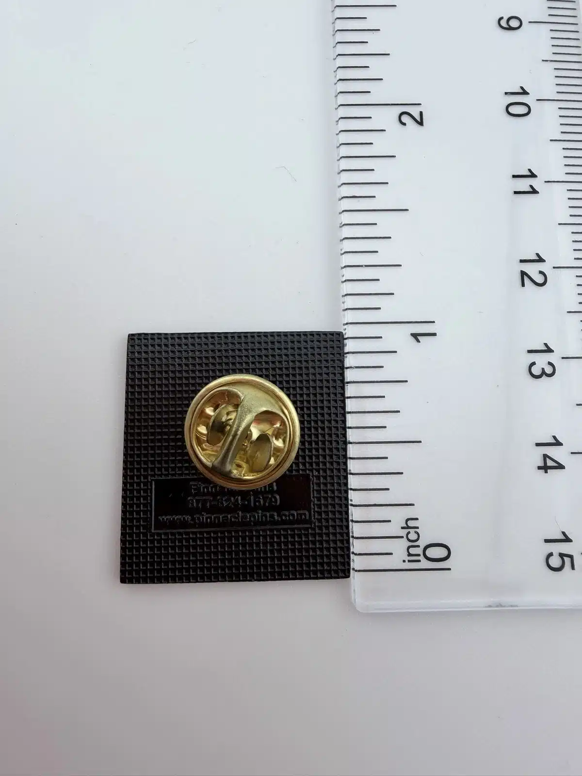 Pin measures approximately 1 inch in width by 1 inch in height.
