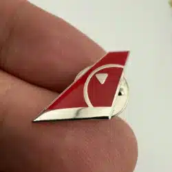 Northwest Airlines plane tail pin features a stylized aircraft tail section with a red tail and the airline’s distinctive circle and arrow logo. The silver tone design reflects the classic Northwest Airlines tail branding used for decades across the carrier’s fleet.
