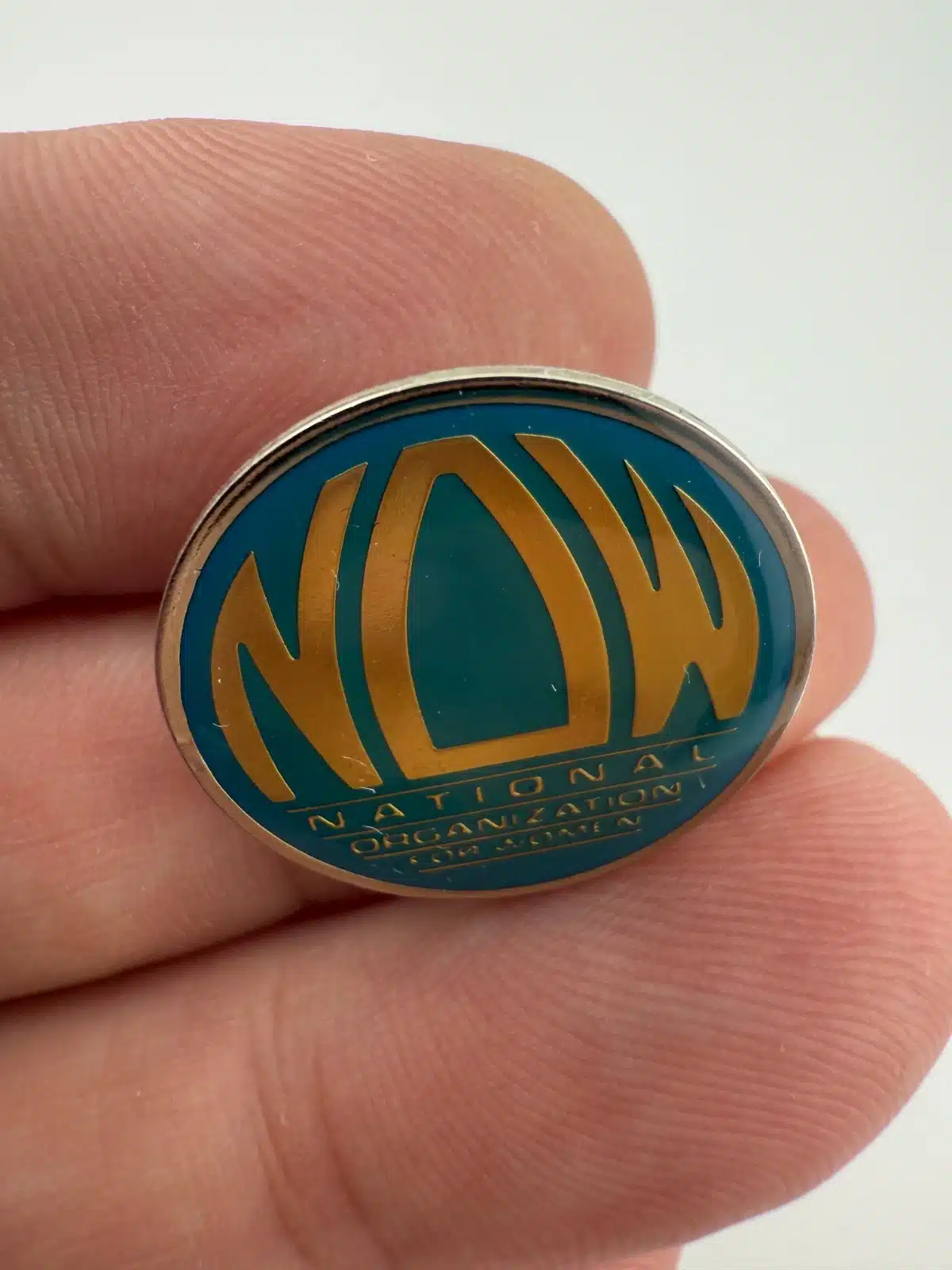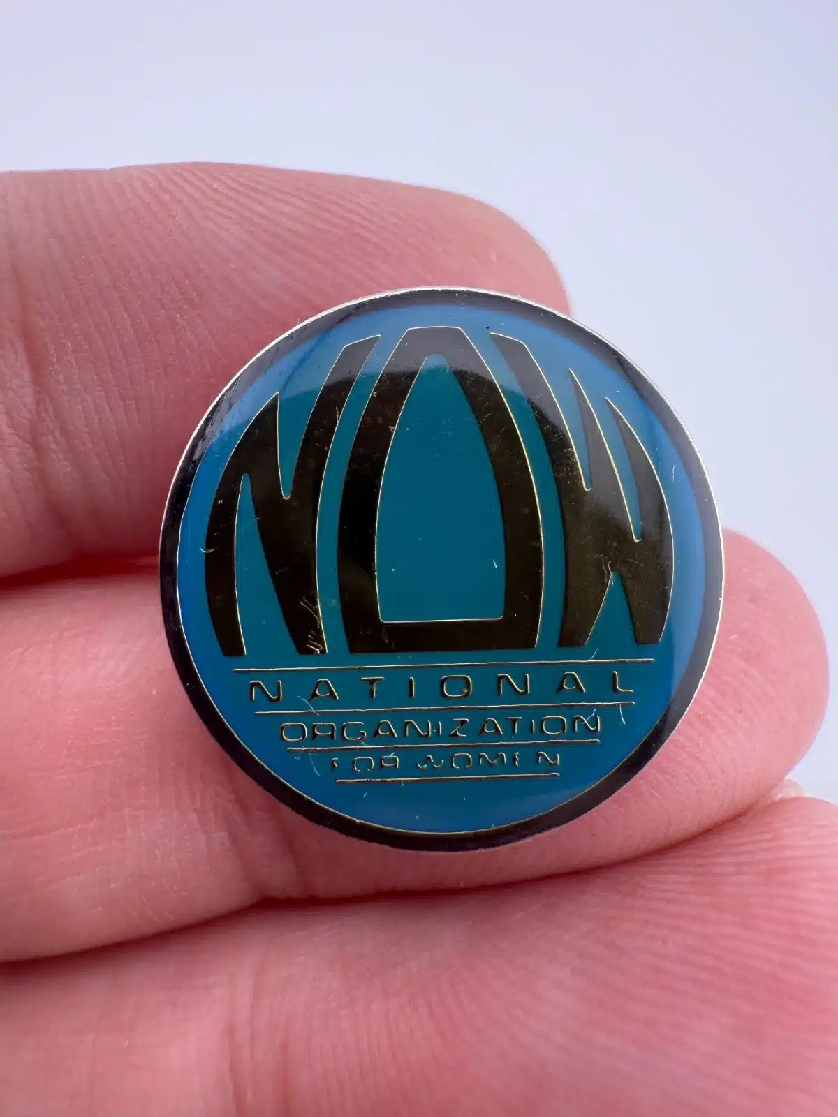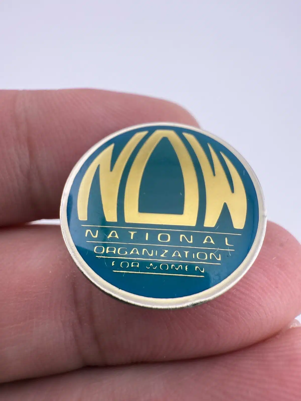 This pin features the NOW logo, which consists of bold, capitalized letters in a striking design, symbolizing the National Organization for Women’s commitment to women’s rights and equality. Founded in 1966, NOW has played a pivotal role in advocating for women across the United States.