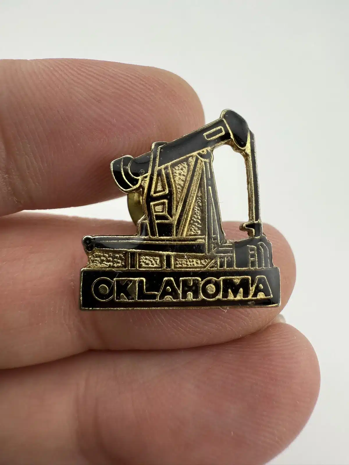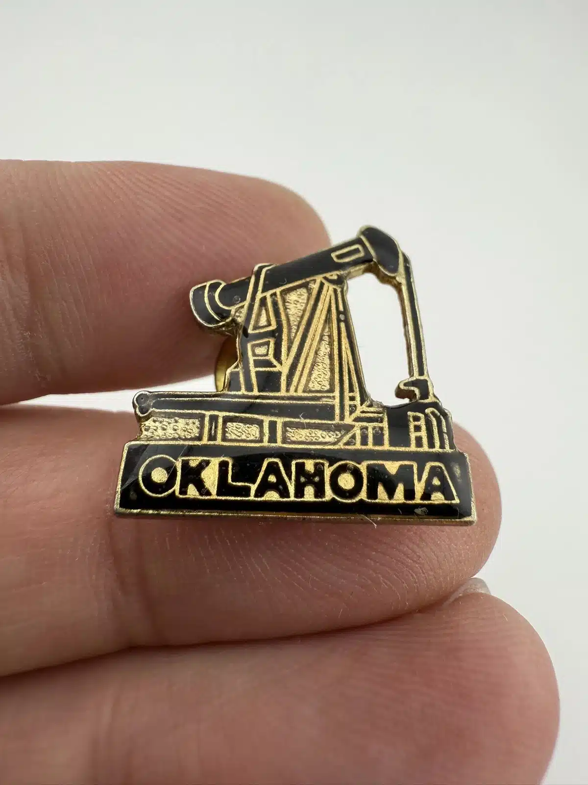 This Oklahoma Oil Field Pump Jack Pin features a detailed representation of a classic pump jack, symbolizing the state’s rich oil heritage.