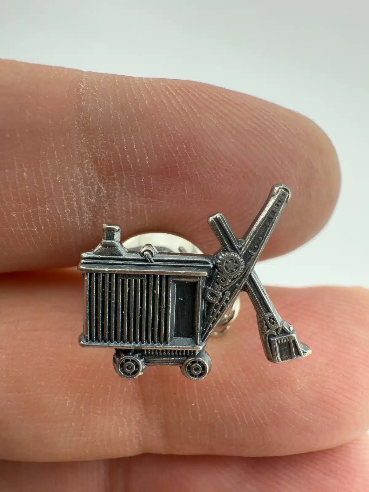 Old Railroad Railway Excavator Tie Tack Pin – Sterling Silver