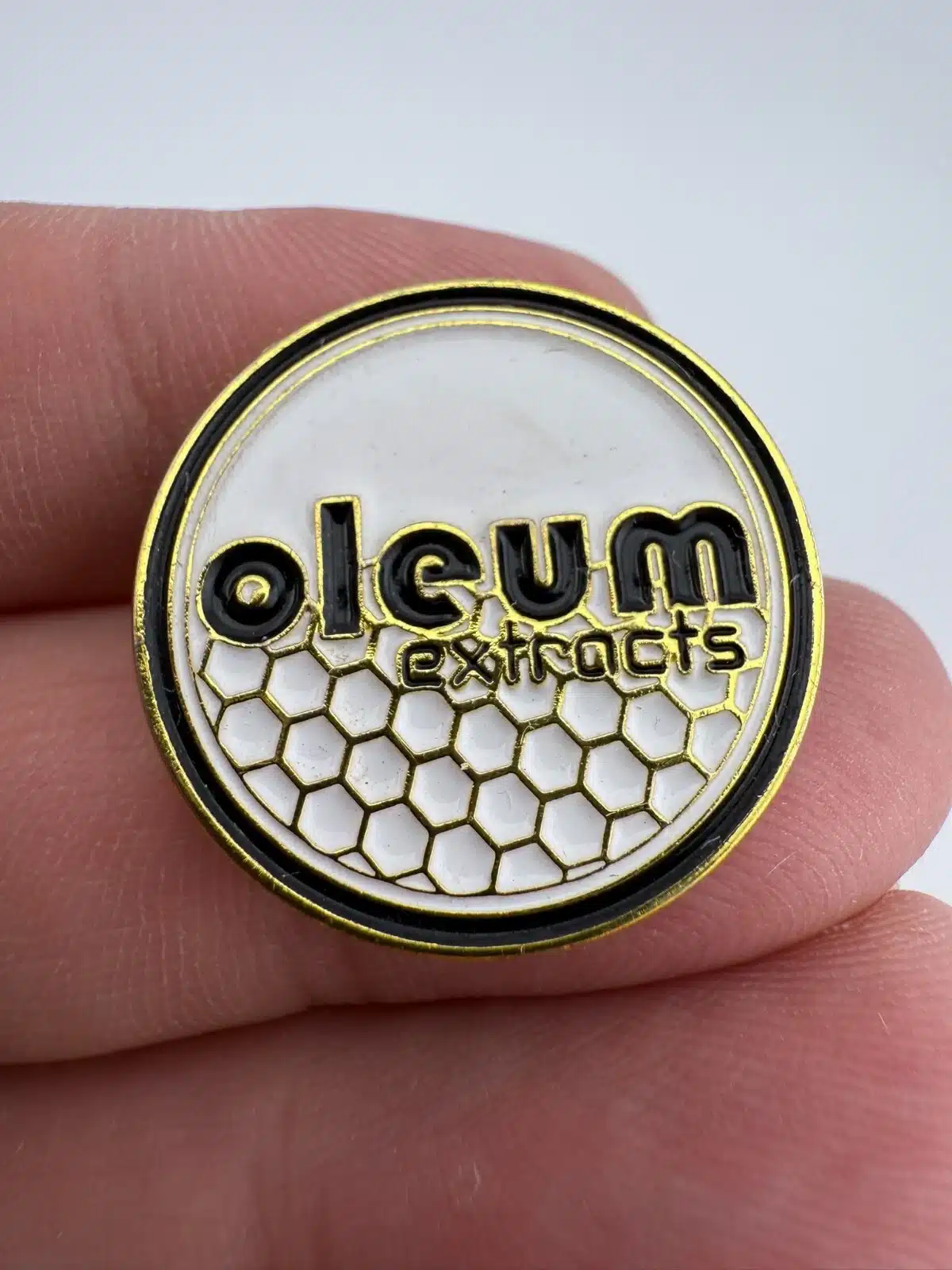 Oleum Extracts Lapel Pin – Gold Tone – Used