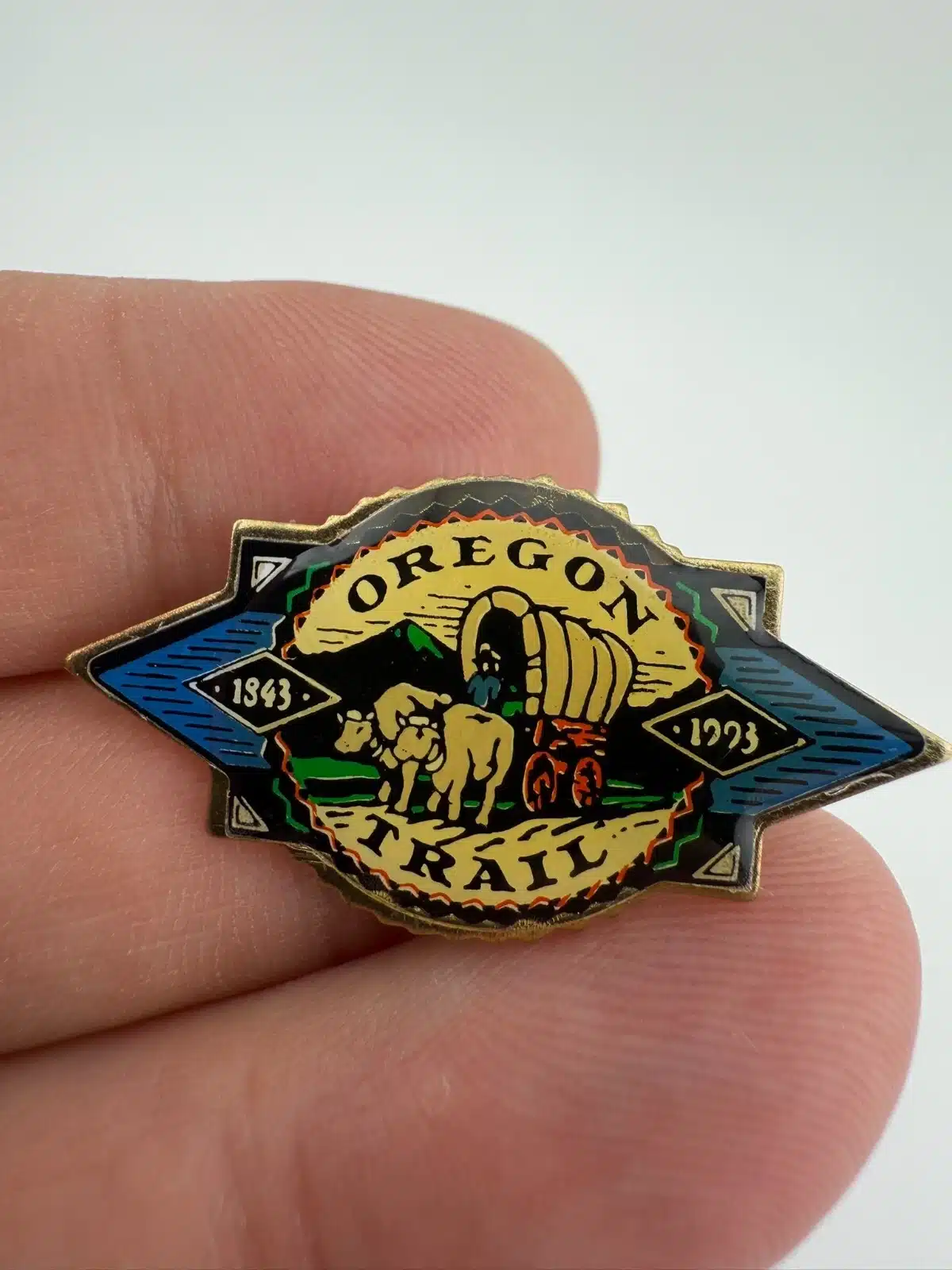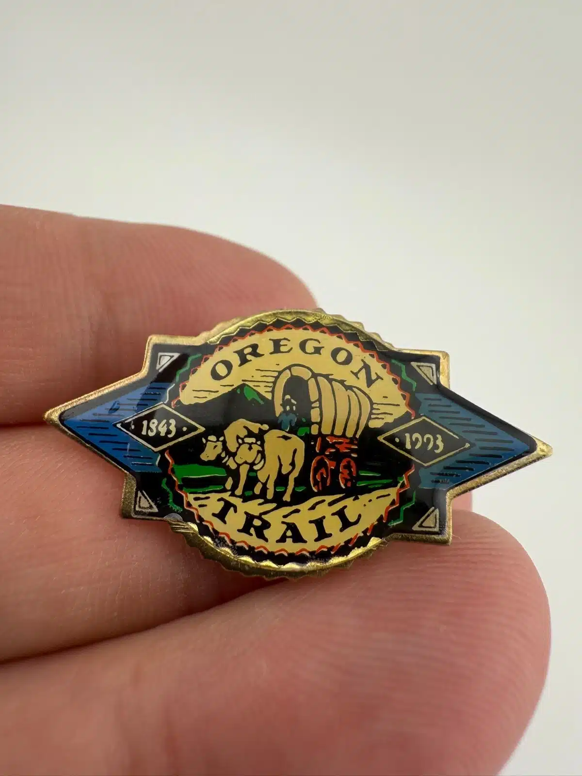Oregon Trail Pin 1843-1993 Covered Wagon & Ox Vintage Lapel Hat Pin
