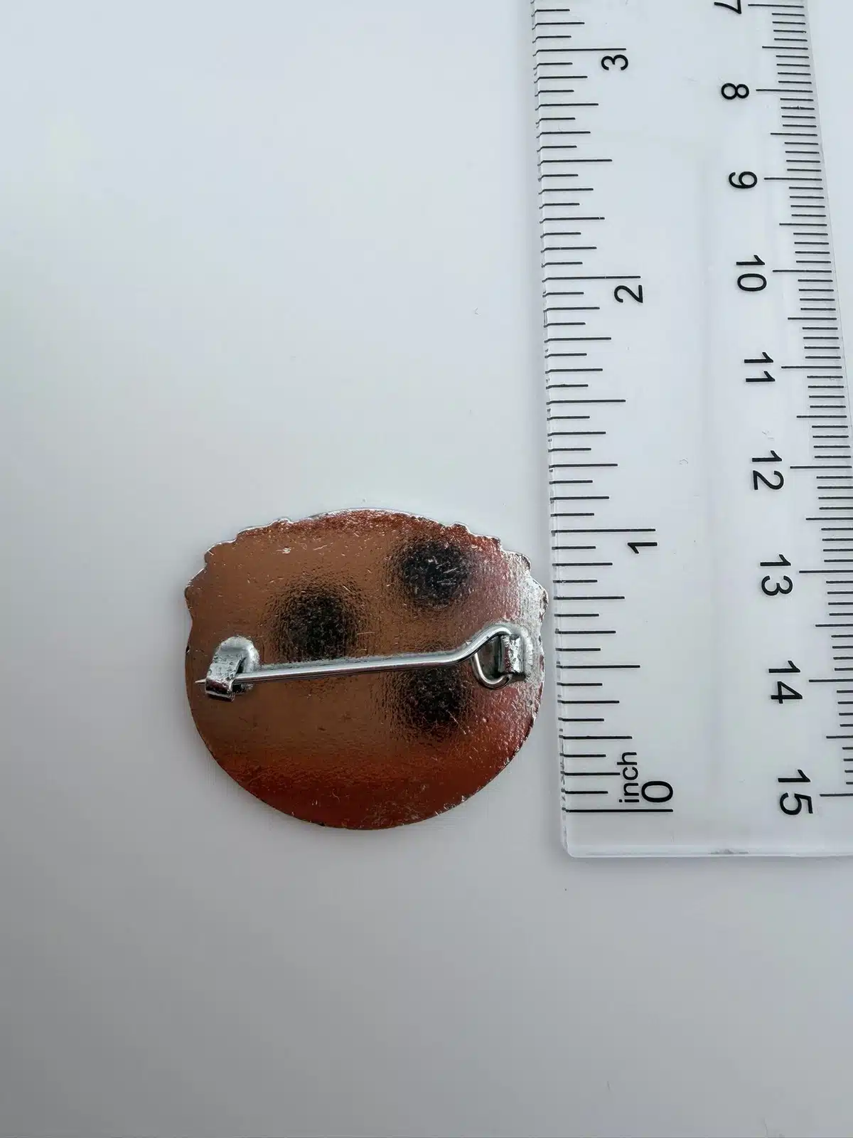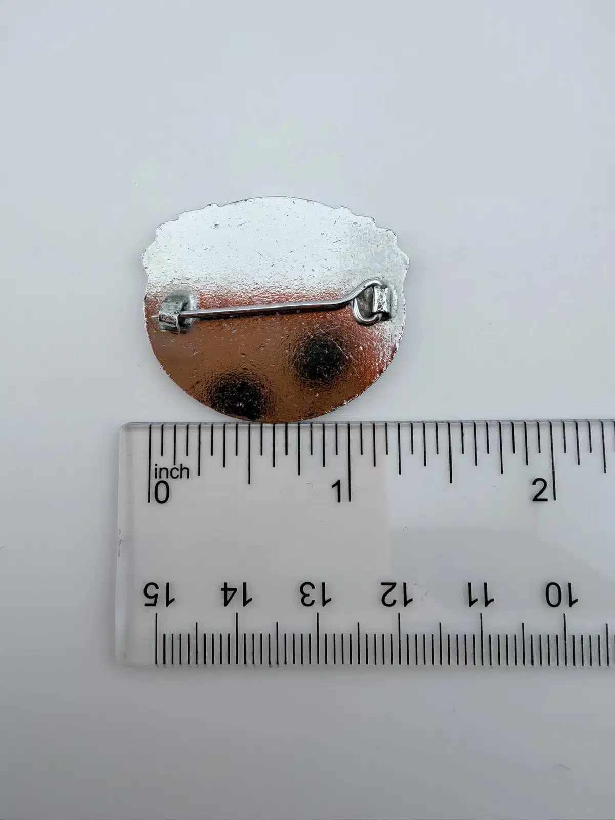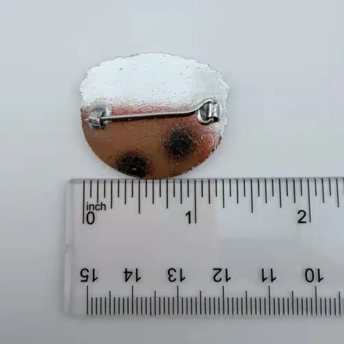 Pin measures just over 1.25 inches wide and just over 1 inch tall.