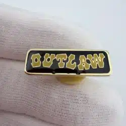 This Outlaw Lapel Hat Pin features bold Western-style lettering in faded yellow against a striking black background, capturing the rugged essence of the outlaw theme. The design evokes the spirit of the American West, where outlaws became legendary figures in folklore and popular culture.
