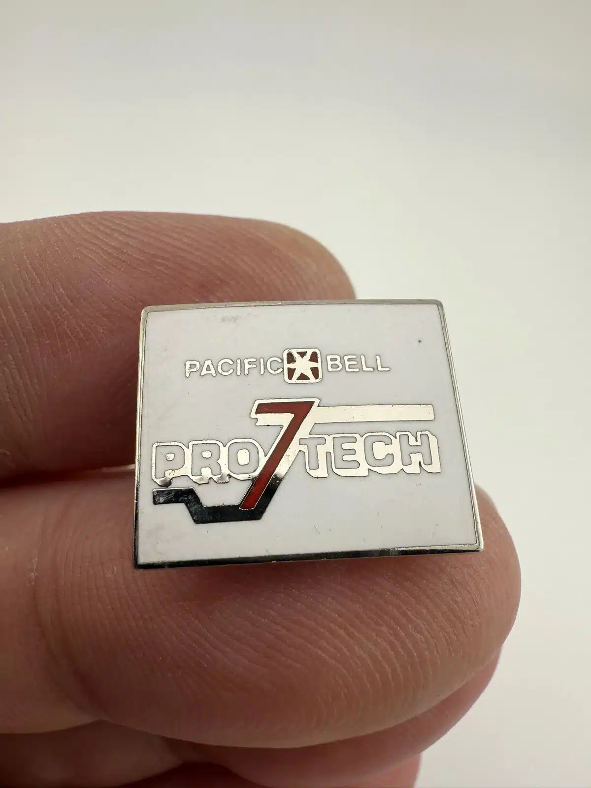 Vintage enamel pin from Pacific Bell with a Pro Tech logo. I was not able to find out what Pro Tech stands for.