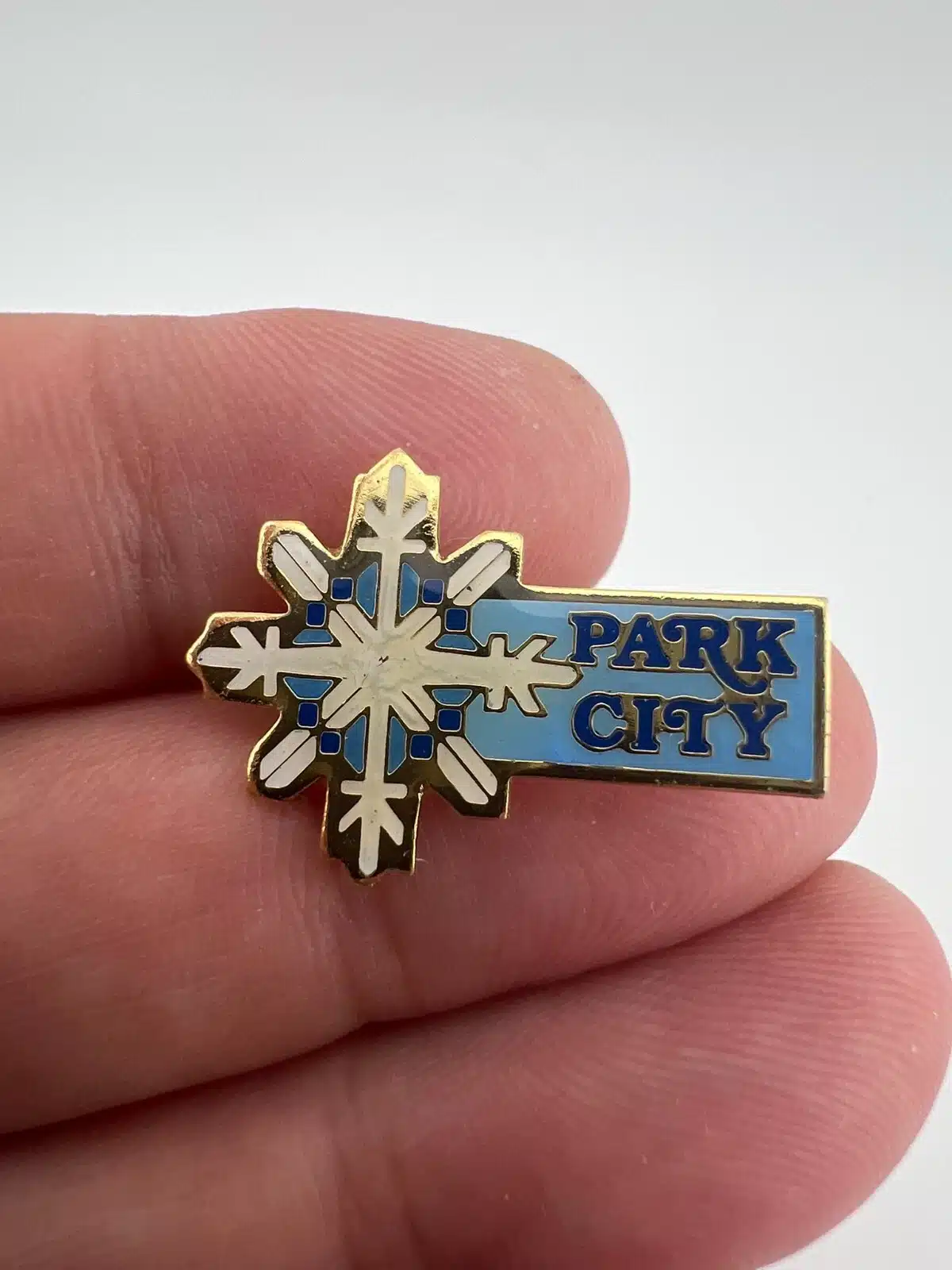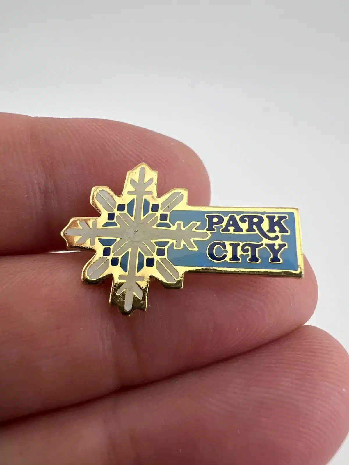 Park City, Utah Ski Resort Vintage Blue Lapel Pin Brooch With Snowflake Design