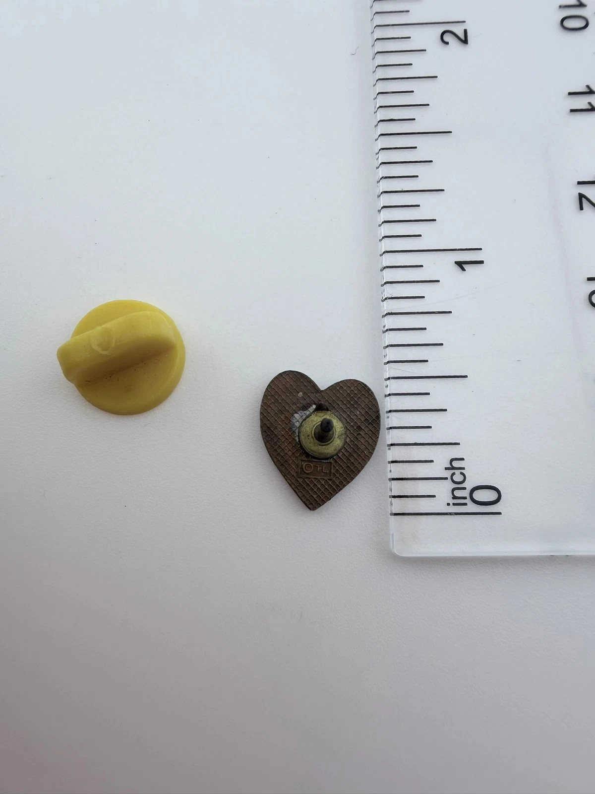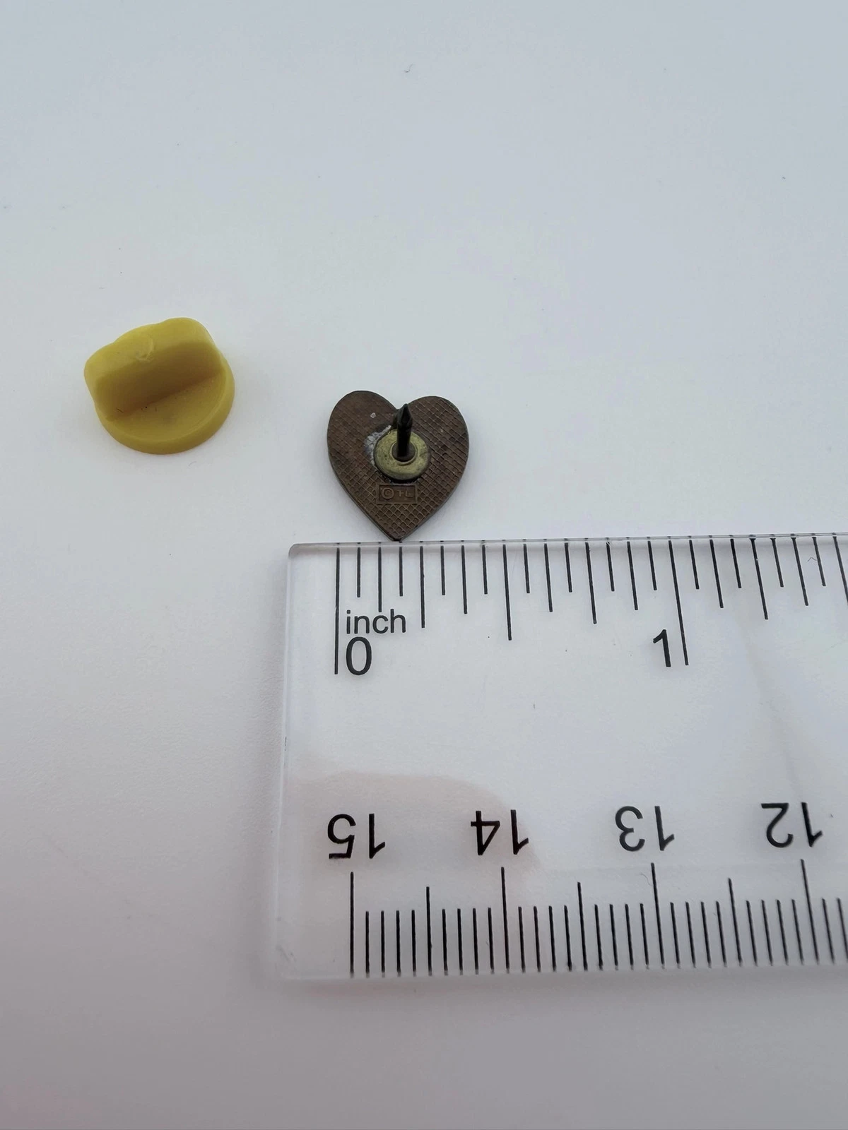 Pin measures under 1/2 inch in width by under 1/2 inch in height.