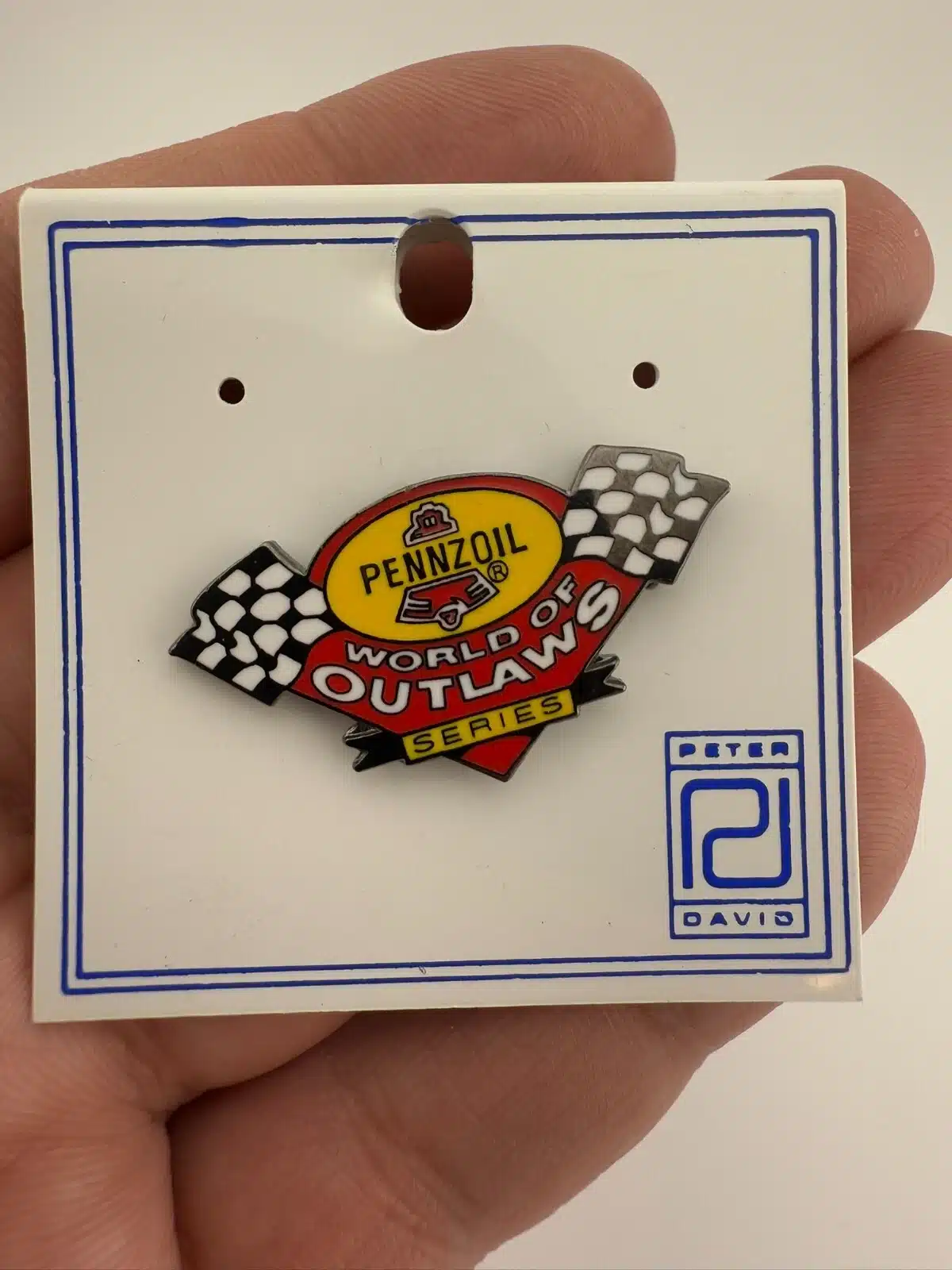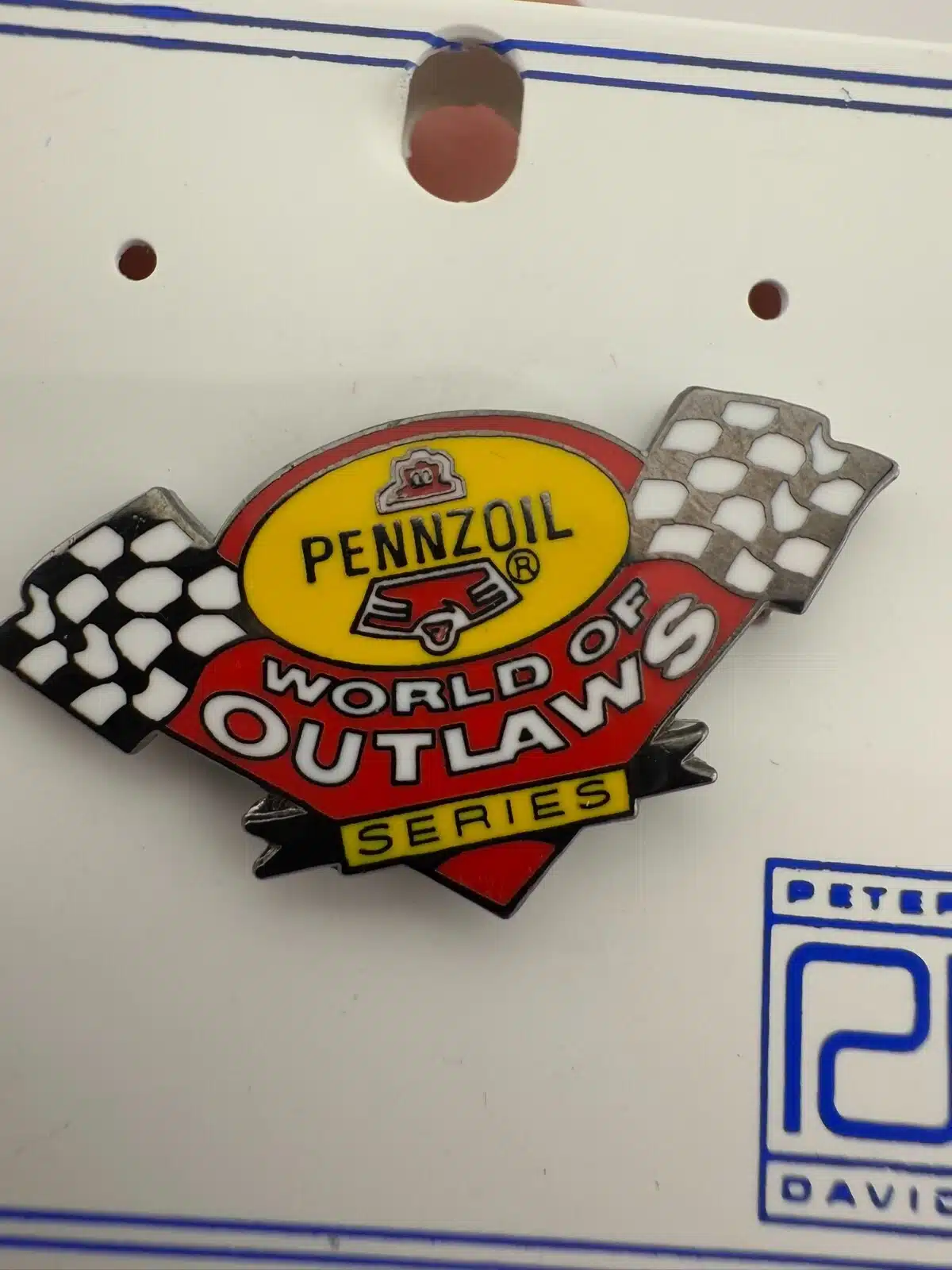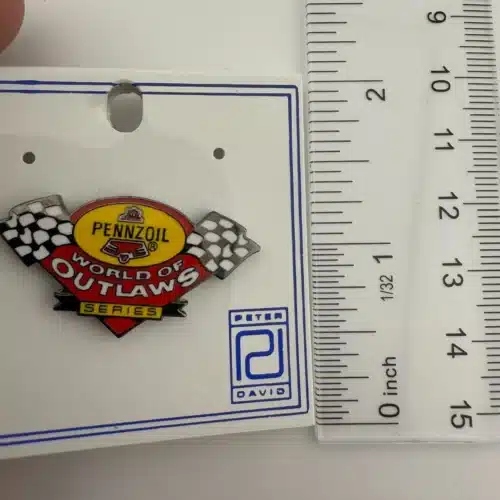 PENNZOIL MOTOR OIL WORLD OF OUTLAWS SERIES Racing Pin With Checkered Flags