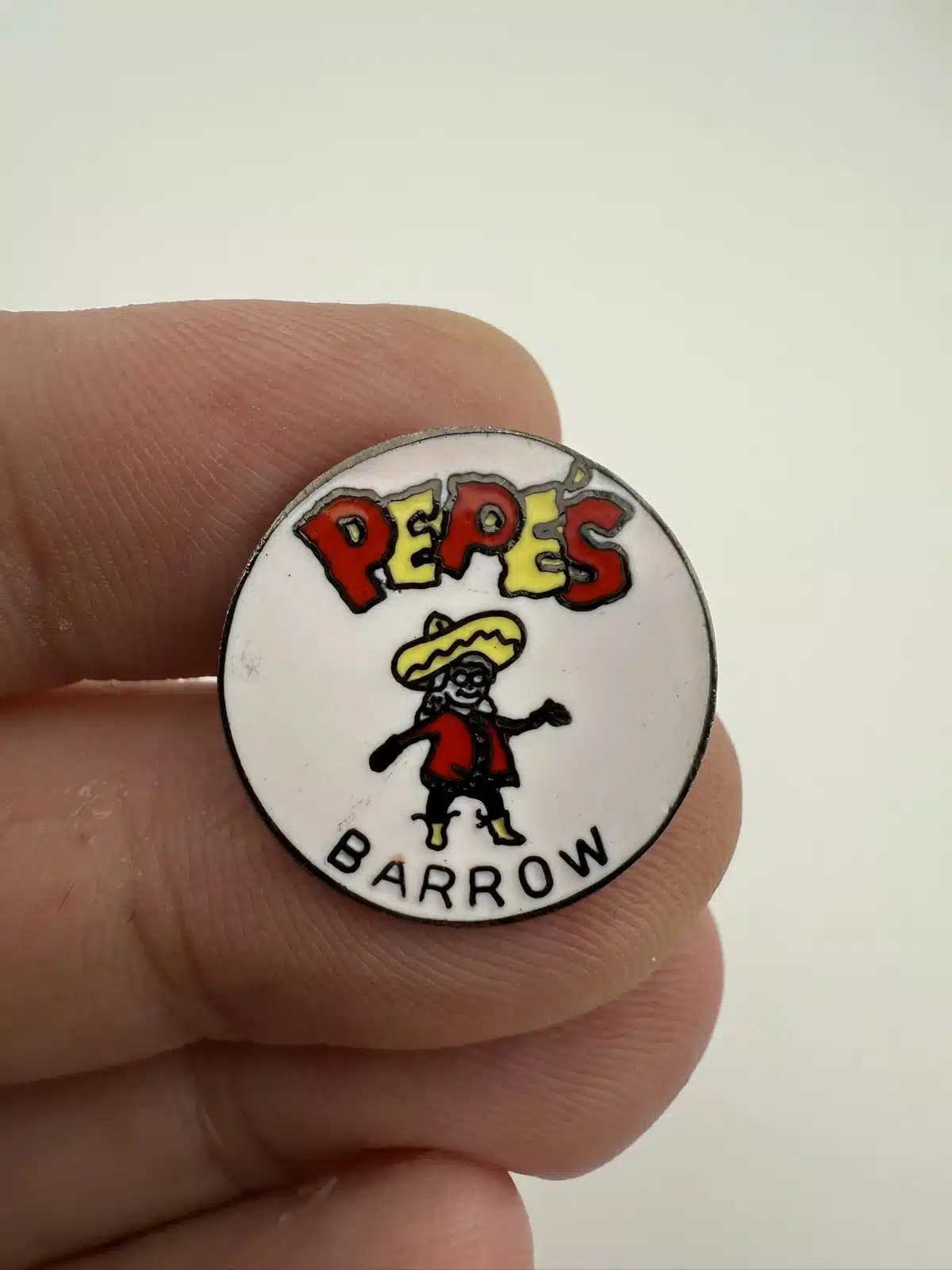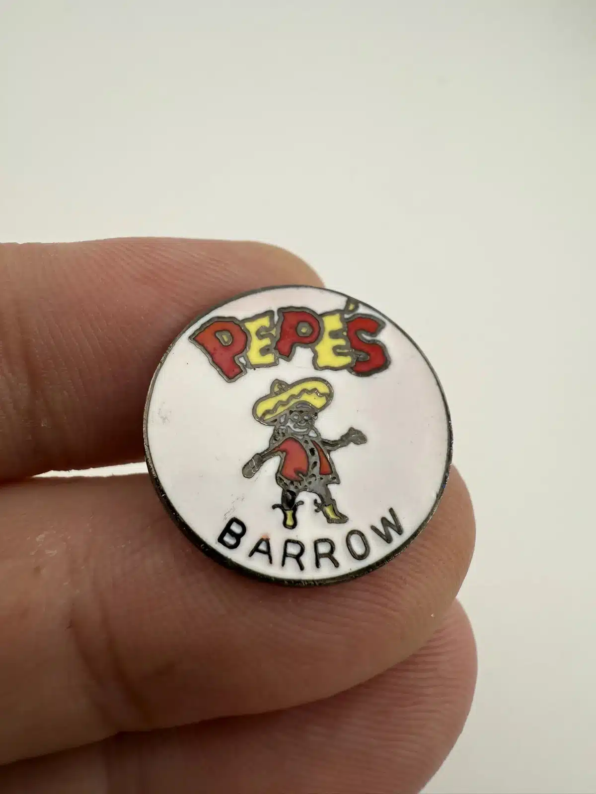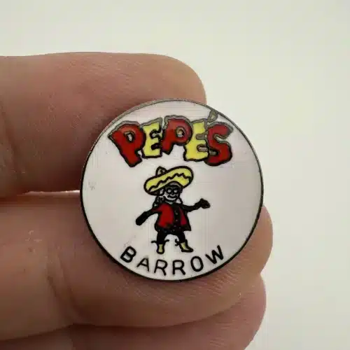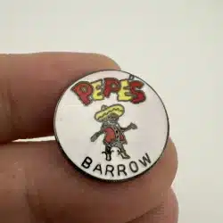 This collectible pin features the logo of Pepe’s North of the Border Restaurant, a well-known establishment located in Barrow, Alaska. Pepe’s was open from October 1978 until a fire shut it down on August 31, 2013.