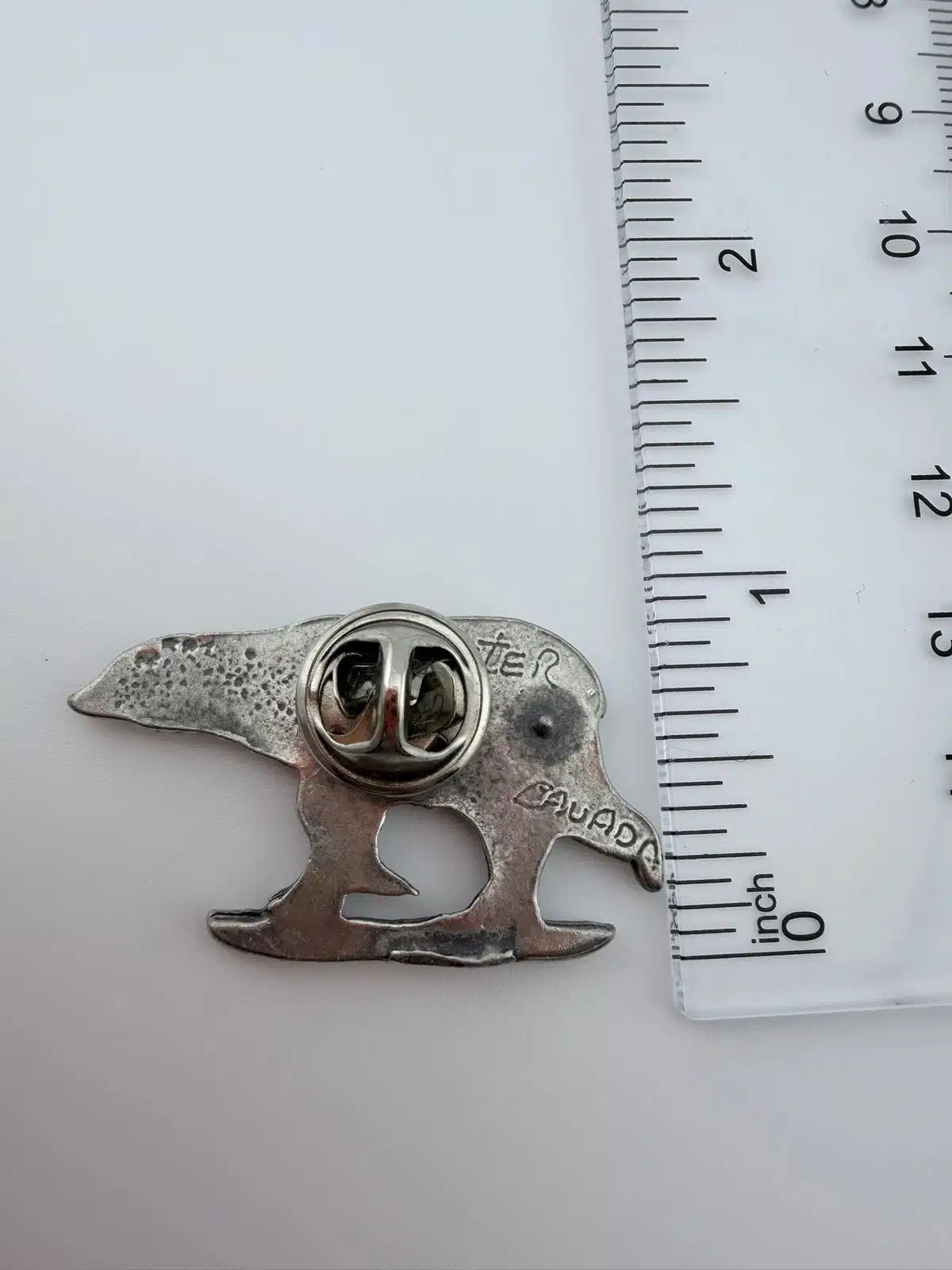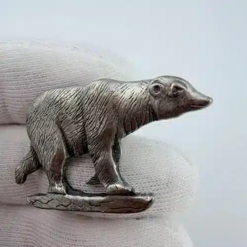 This pewter pin showcases a charming polar bear artfully balanced on a small piece of ice, capturing the essence of its natural habitat. Crafted in Canada, it reflects the country’s rich wildlife and commitment to preserving its unique ecosystems.