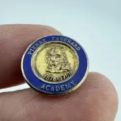 The Pierre Fauchard Academy Tie Tack Pin features the name of the renowned dental organization honoring the legacy of Pierre Fauchard, a pivotal figure in dentistry from 1678-1761.