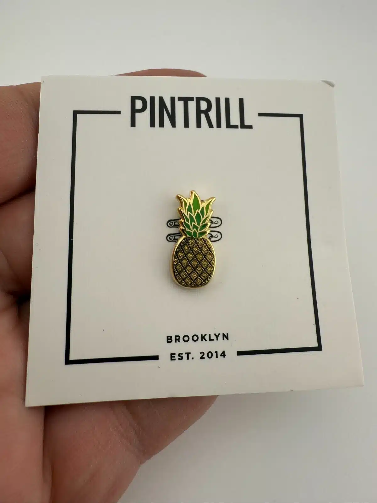 Pintrill Pineapple Lapel Hat Pin – Gold Tone – On Card – *TINY PIN*