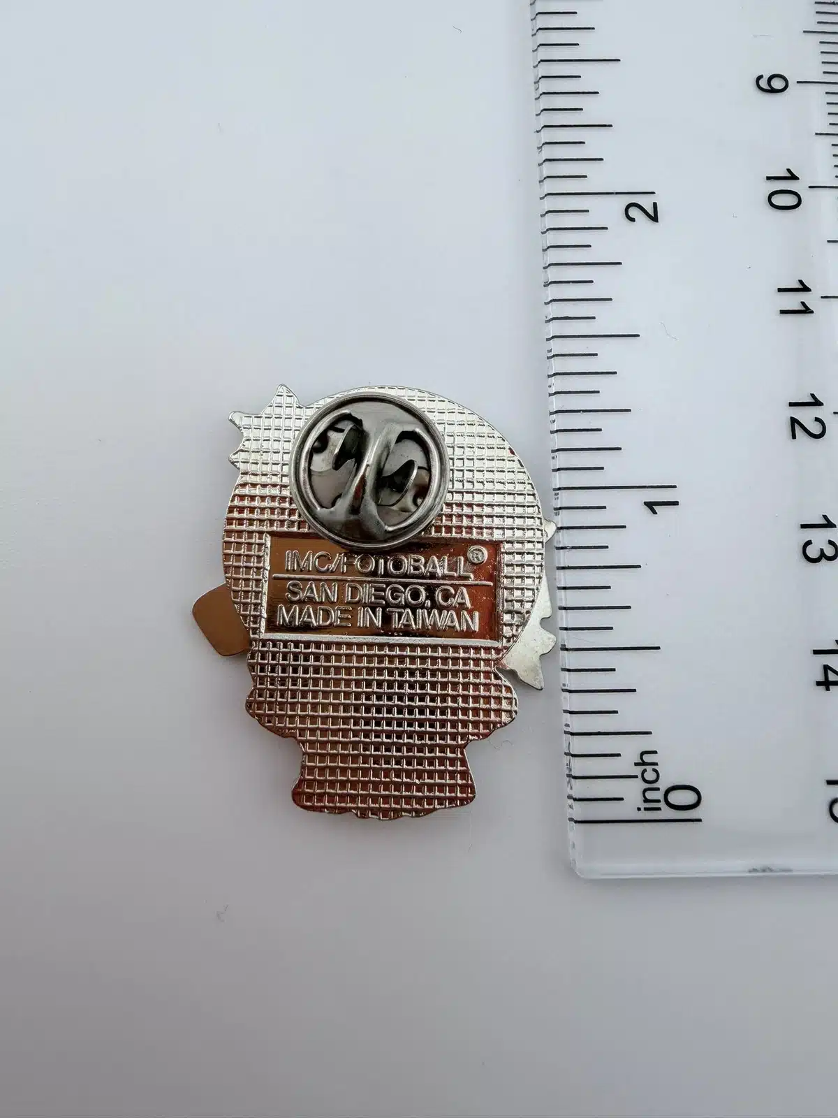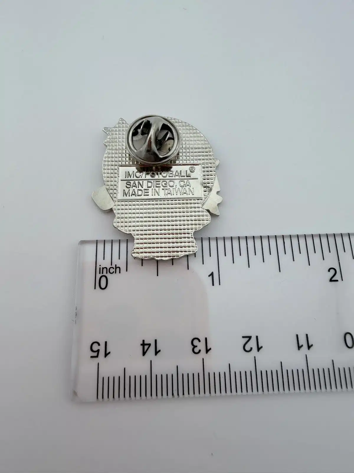Pin measures just over 1 inch in width by just over 1.25 inches in height.