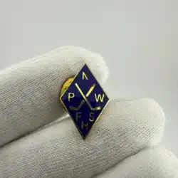 This diamond-shaped pin features the letters ‘PNW’ at the top and ‘FHS’ at the bottom, with crossed hockey sticks prominently displayed in the center. The design is enhanced by purple enamel and gold tone highlights, celebrating the Pacific Northwest Field Hockey community.