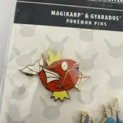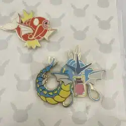 This pin set features the iconic Magikarp and its evolved form, Gyarados, both rendered in vibrant colors that capture their distinctive designs. As beloved characters from the Pokémon franchise, they represent the journey of transformation and are a nod to the series’ enduring popularity since its debut in the late 1990s.