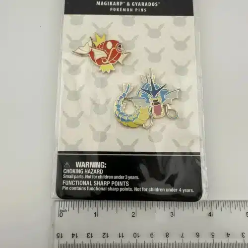 This pin set features the iconic Magikarp and its evolved form, Gyarados, both rendered in vibrant colors that capture their distinctive designs. As beloved characters from the Pokémon franchise, they represent the journey of transformation and are a nod to the series’ enduring popularity since its debut in the late 1990s.