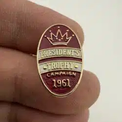 Unknown vintage lapel pin that reads President’s Trophy Campaign 1961. Pin has a crown at top.