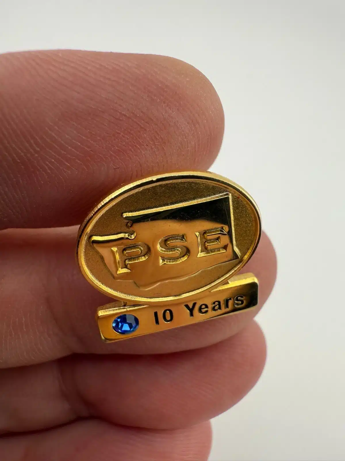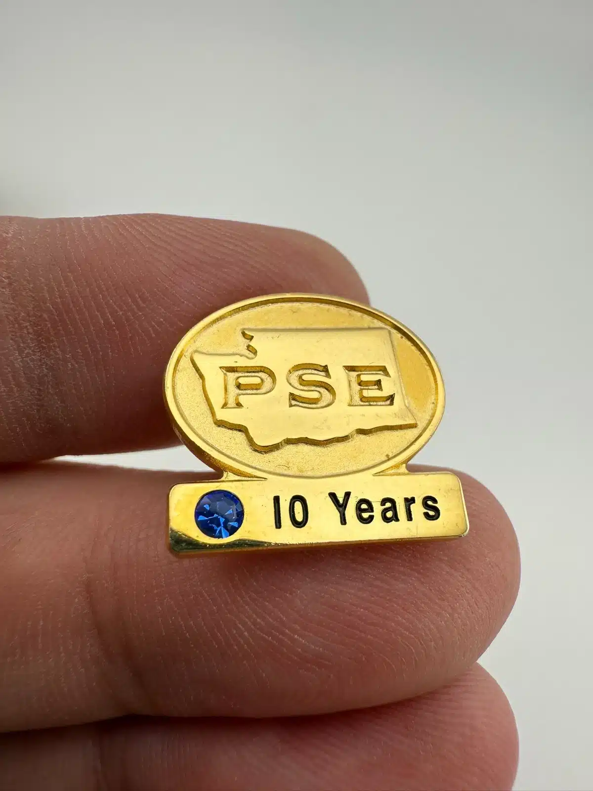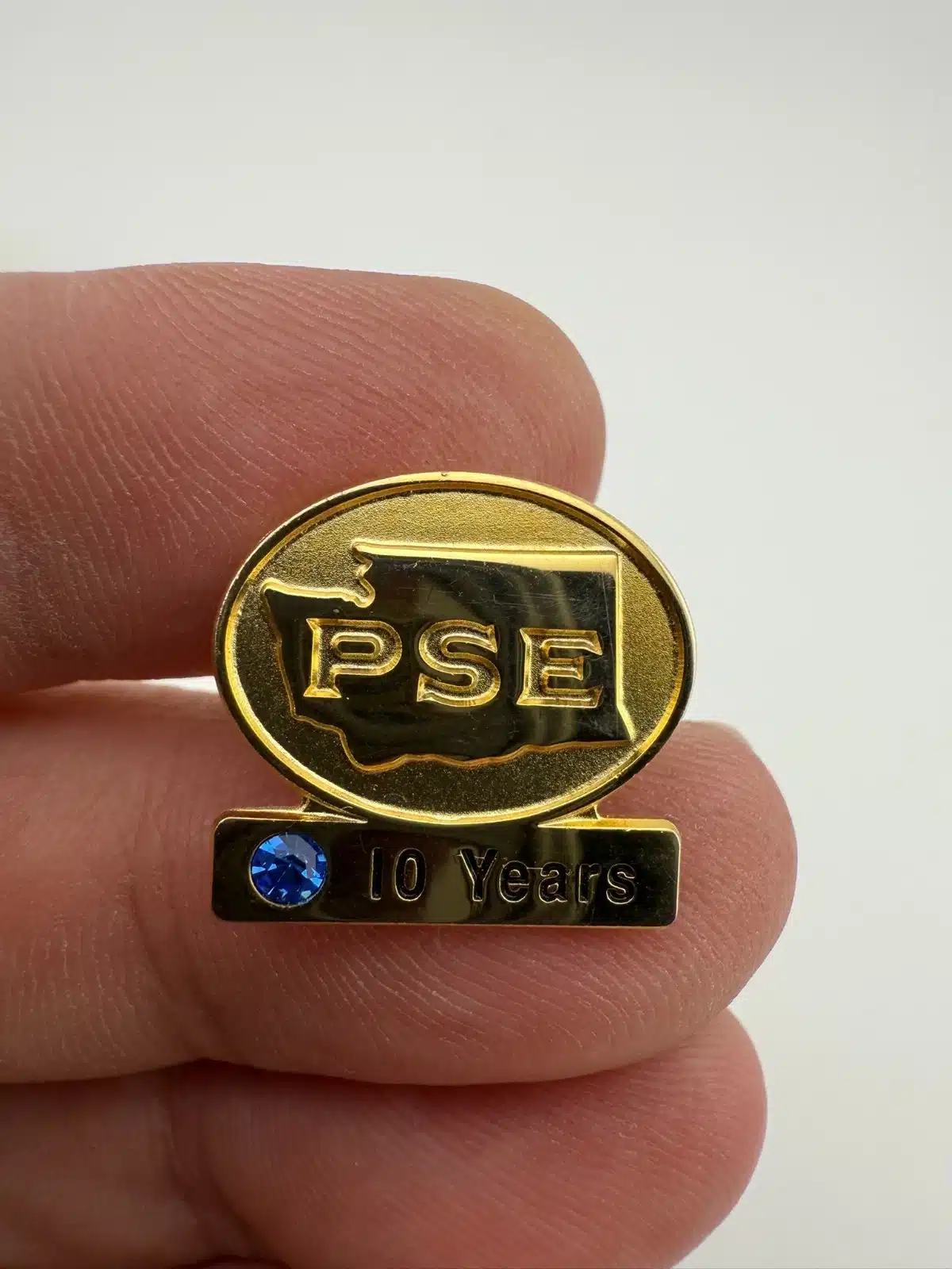 PSE Puget Sound Energy 10 Year Service Pin with Blue Rhinestone – Washington St.