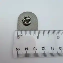 Measuring approximately 1 inch wide by 1 inch tall, the pin is arch shaped, resembling a small window. The unique silhouette adds character to the piece and helps it stand out among traditional square or circular fair pins.