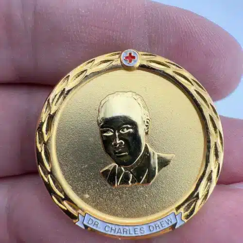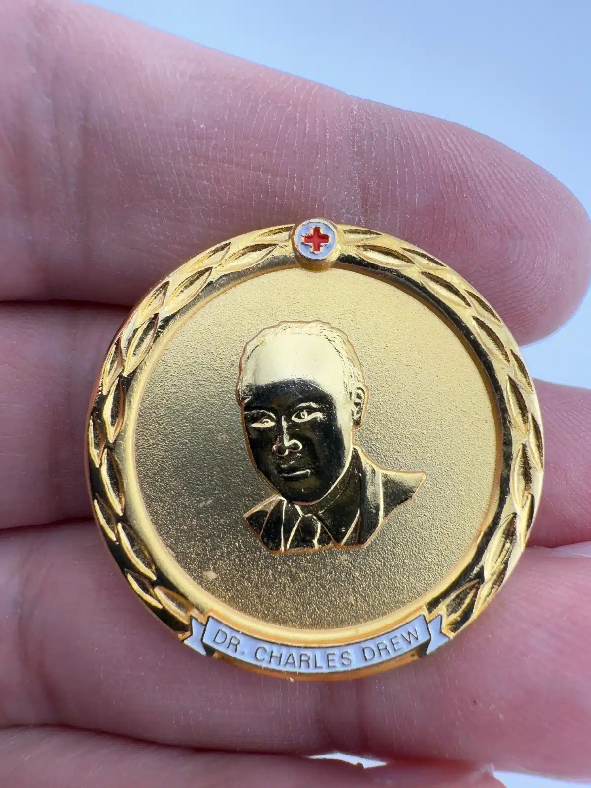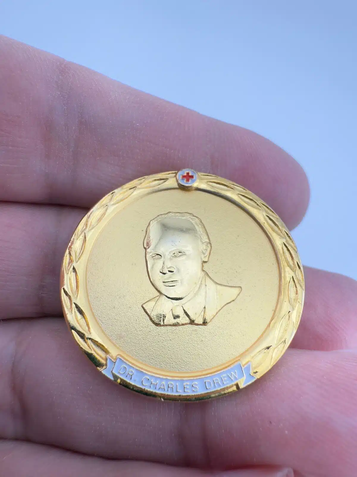 Red Cross Dr. Charles Drew #1077 Gold Tone Brooch Pendant