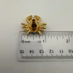 Crab motif jewelry has been produced in various styles, often drawing from coastal and marine themes in decorative accessories. Pin measures approximately 1 inch in width by 1 inch in height.