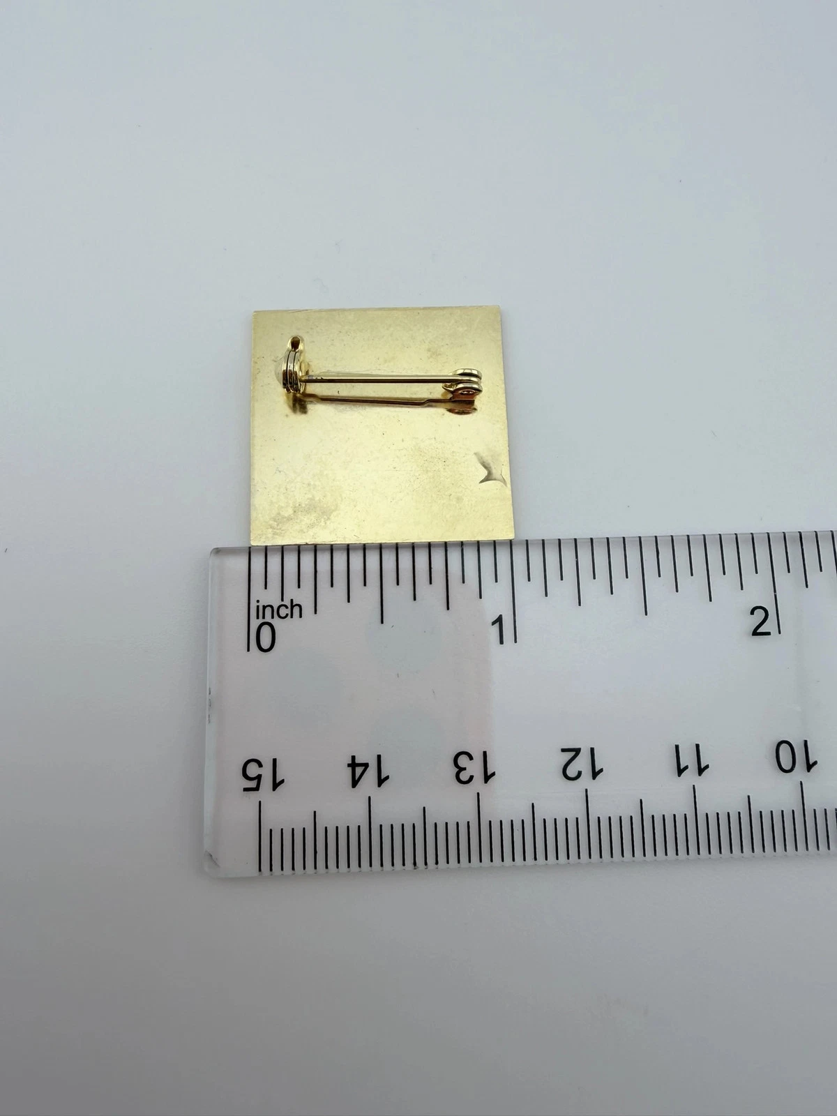 The pin measures approximately 1 inch in width by 1 inch in height.