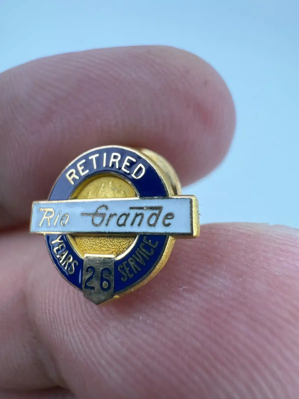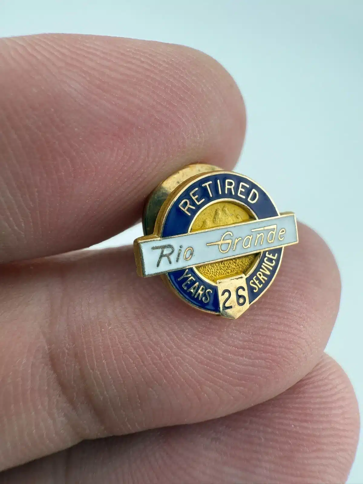 Rio Grande Railroad Retired 26 Years Service 1/10 10K Gold Tie Tack Pin – cTo