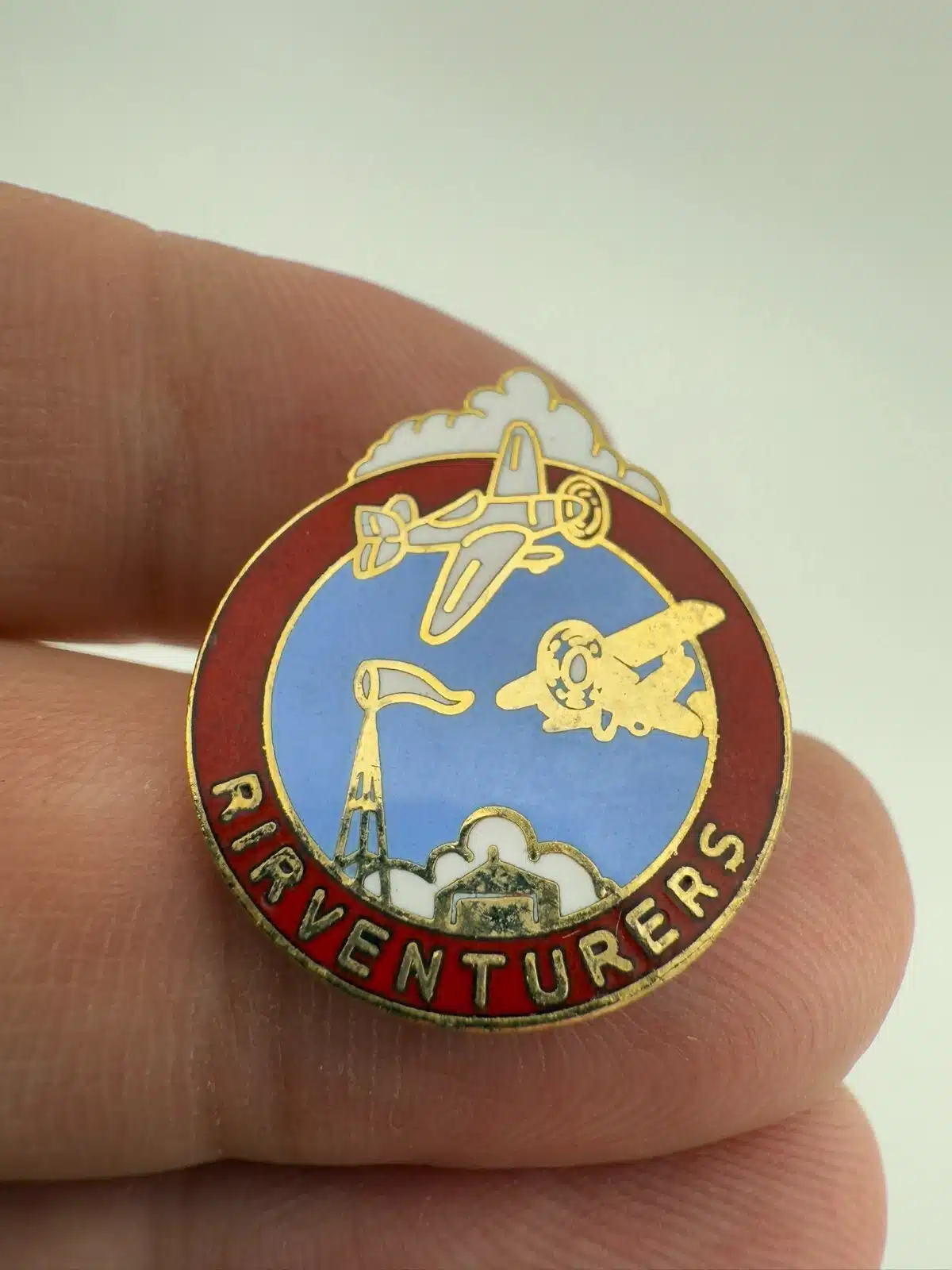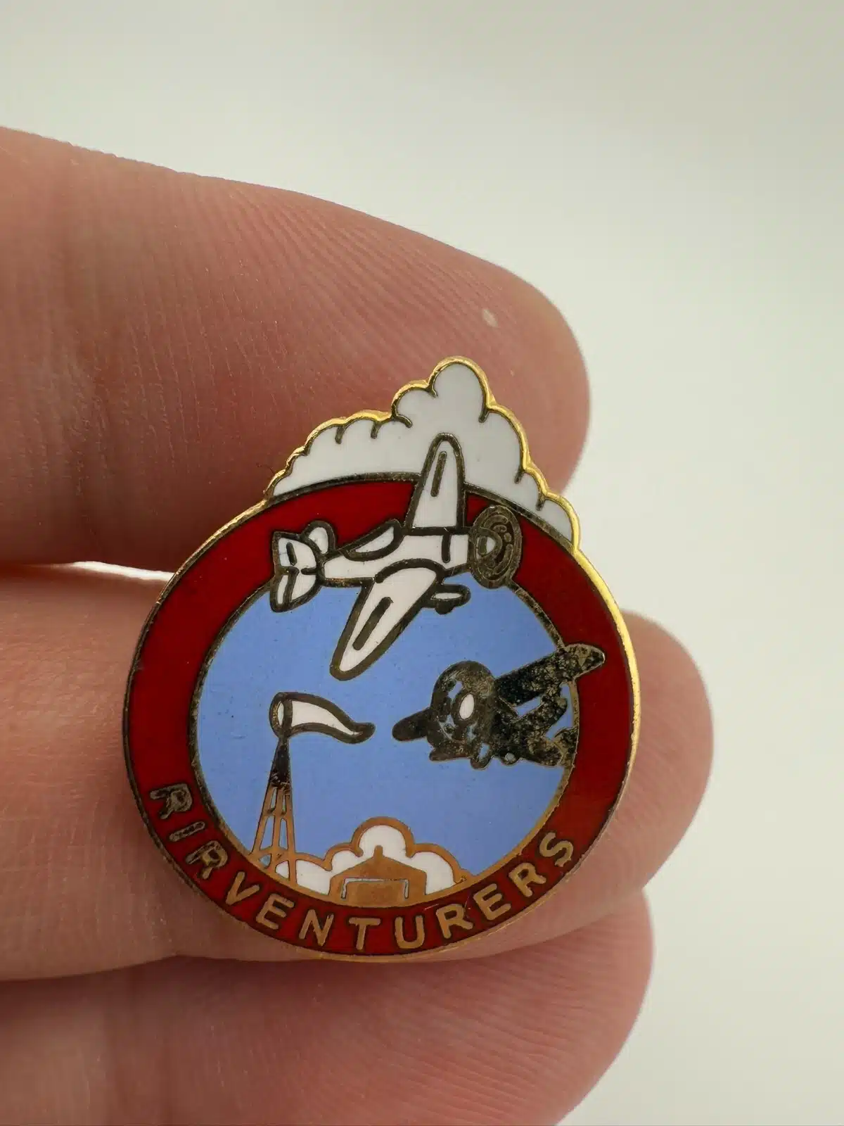 Rirventurers Lapel Hat Pin with planes, clouds, etc